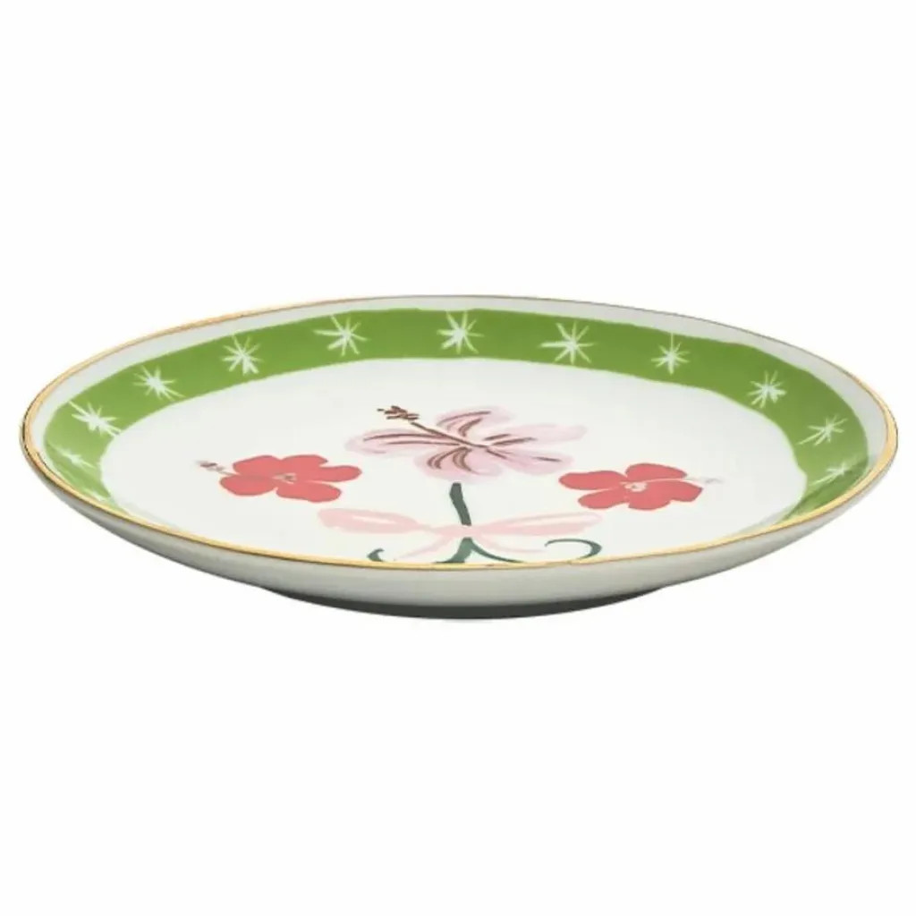 - petite assiette avec décalcomanie et détails dorés, décorations appliquées à la main et détails dorés