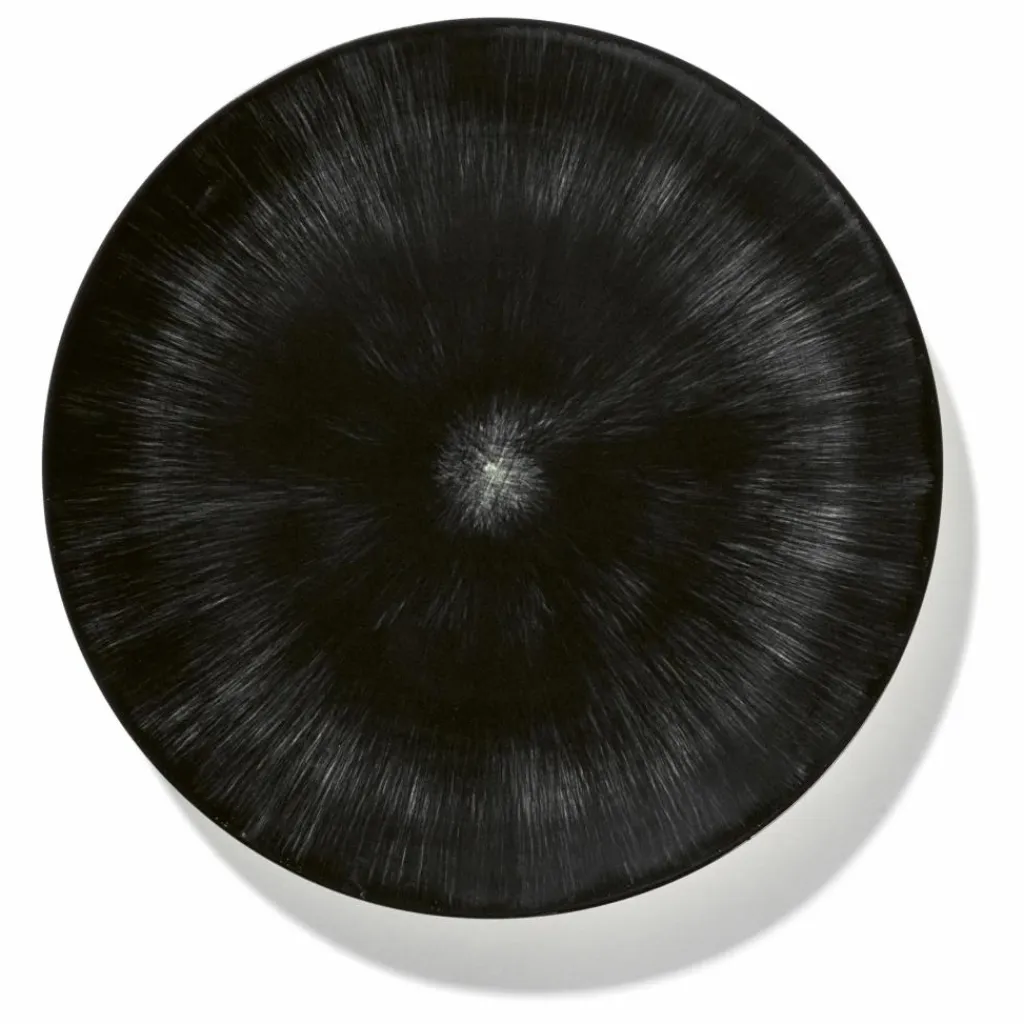La collection Dé est née d’un jeu de clair-obscur, caractéristique du style d’Ann Demeulemeester. Le résultat offre une série de motifs ombrés peints à la main, créant ainsi un minutieux jeu de lignes.
