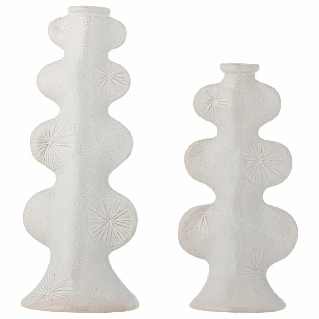 - Les Bougeoir Cason de Bloomingville sont proposés par lot de deux et sont fabriqués en grès avec une forme douce et ondulante et de fins motifs décoratifs. Les variations naturelles de l’émail font que chaque Bougeoir est unique.