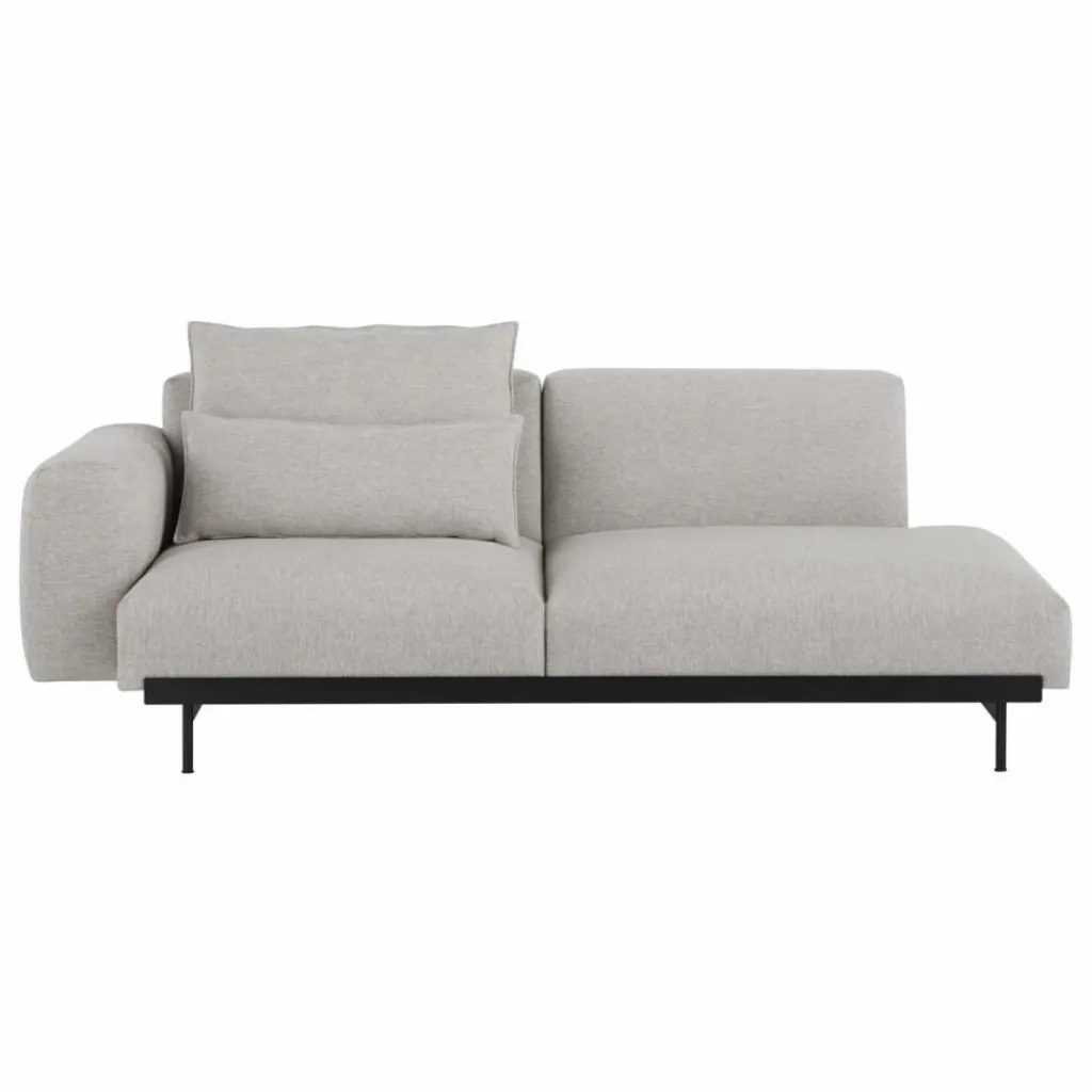 - Configuration pré-designée à 2 modules, correspondant à un canapé 2 places. Accoudoir à l’angle gauche, coussins non inclus.