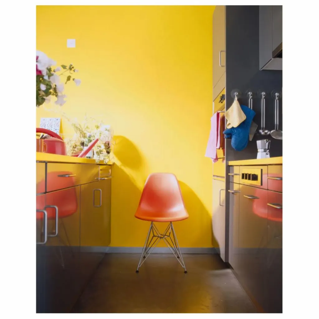 La chaise DSR (Dining Height Side Chair Rod Base) est réputée pour son piètement de type « tour Eiffel », une caractéristique emblématique qui allie élégance, légèreté et rigueur structurelle. Ce piètement, fabriqué en fil d’acier, est une construction complexe et gracieuse qui confère à la chaise un caractère distinctif tout en assurant sa fonctionnalité. Inspiré par l’architecture iconique de la tour Eiffel, ce design moderne offre à la fois une esthétique contemporaine et une solidité remarquable, ce qui en fait un choix prisé dans de nombreux espaces contemporains.