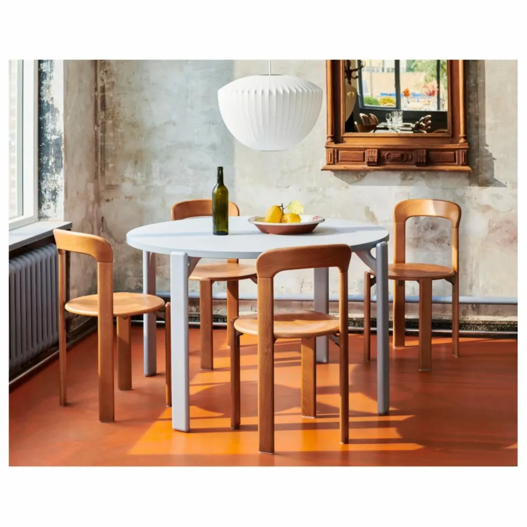 Sur la base de la collection Rey originale conçue par le designer suisse Bruno Rey en 1971, HAY s’est associé à Dietiker pour présenter la chaise et le tabouret Rey. Développée autour du design acclamé de la chaise empilable – connue pour son processus de production sans vis – toute la collection est unifiée par une composition solide et des bords arrondis. La collection conserve la fonctionnalité et la résistance des designs classiques et a été modifiée dans de nouvelles dimensions pour s’adapter aux exigences du style de vie contemporain. Elle a été rééditée dans les couleurs originales, ainsi que dans de nouveaux tons sélectionnés par HAY. Son design épuré habillera votre intérieur avec élégance.