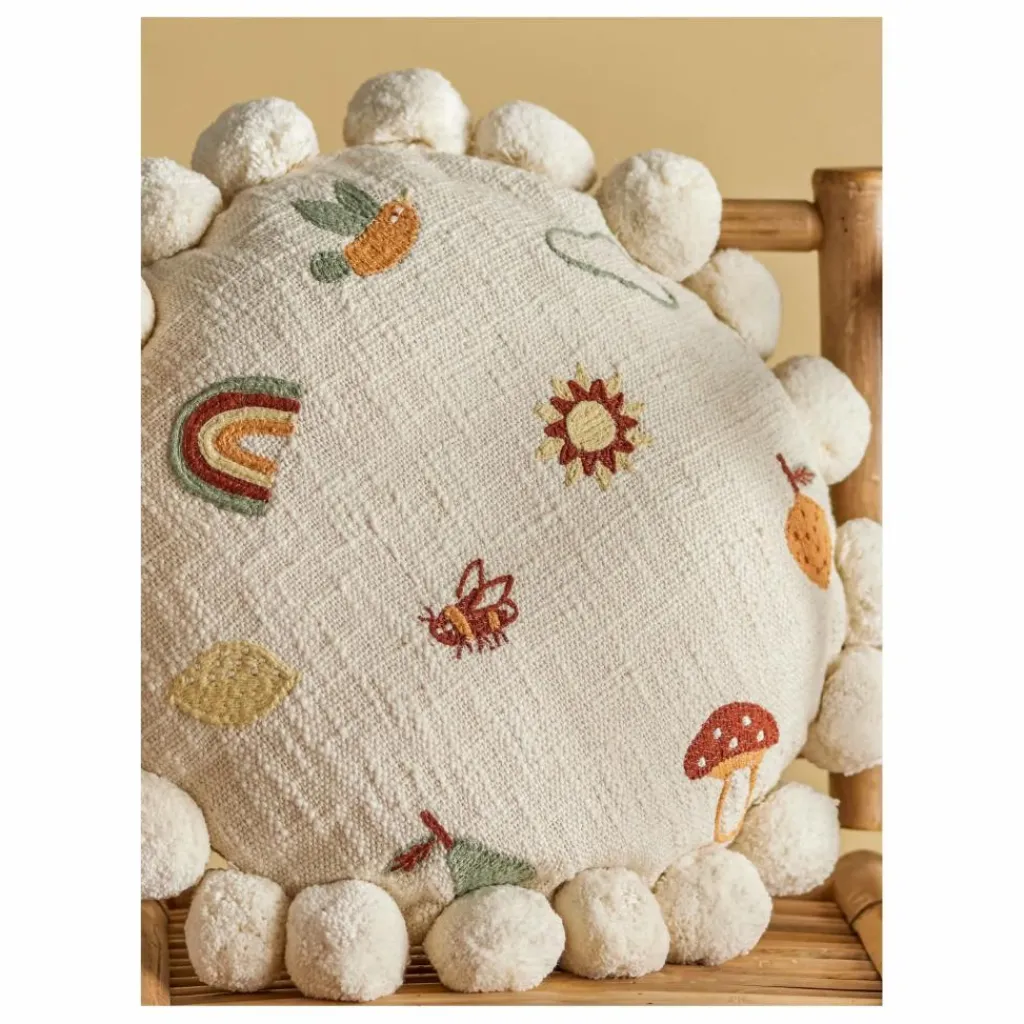 - Le coussin Agnes de Bloomingville MINI est l’ajout parfait à toute chambre d’enfant avec ses jolies figures délicatement brodées dans le design. Les pompons ronds et doux le long du bord ajoutent une ambiance chaleureuse, rendant le coussin à la fois décoratif et accueillant. Il est parfait pour des moments de détente, lorsque les enfants ont besoin de se reposer après une longue journée, ou de se détendre avec un oreiller et un bon livre.