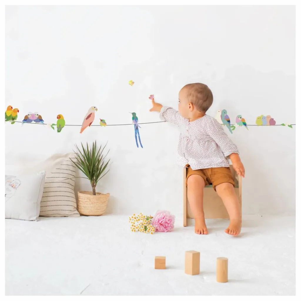 Une planche de stickers composée d’oiseaux pour une décoration graphique. Ces stickers sont très simples à appliquer et apporteront une touche personnelle à la chambre de votre enfant.