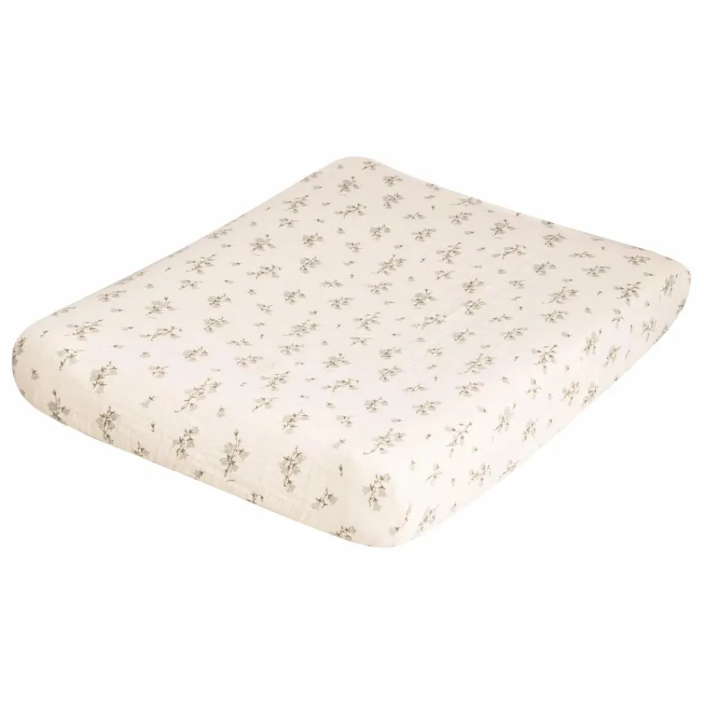 Habillez le matelas à langer de bébé de cette élégante housse en gaze de coton et aux imprimés floraux délicats.