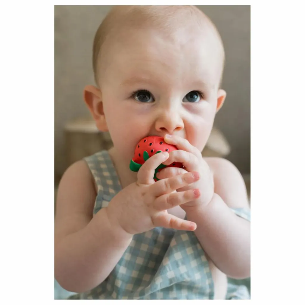 - Le mini anneau de dentition Sweetie la fraise est un jouet de dentition pour nouveau-né.