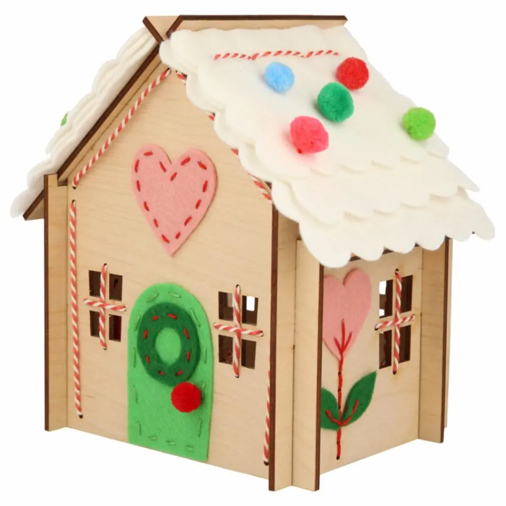 - Contient des pièces en bois et en feutre avec fils, ficelles, pompons, autocollants et aiguille en plastique