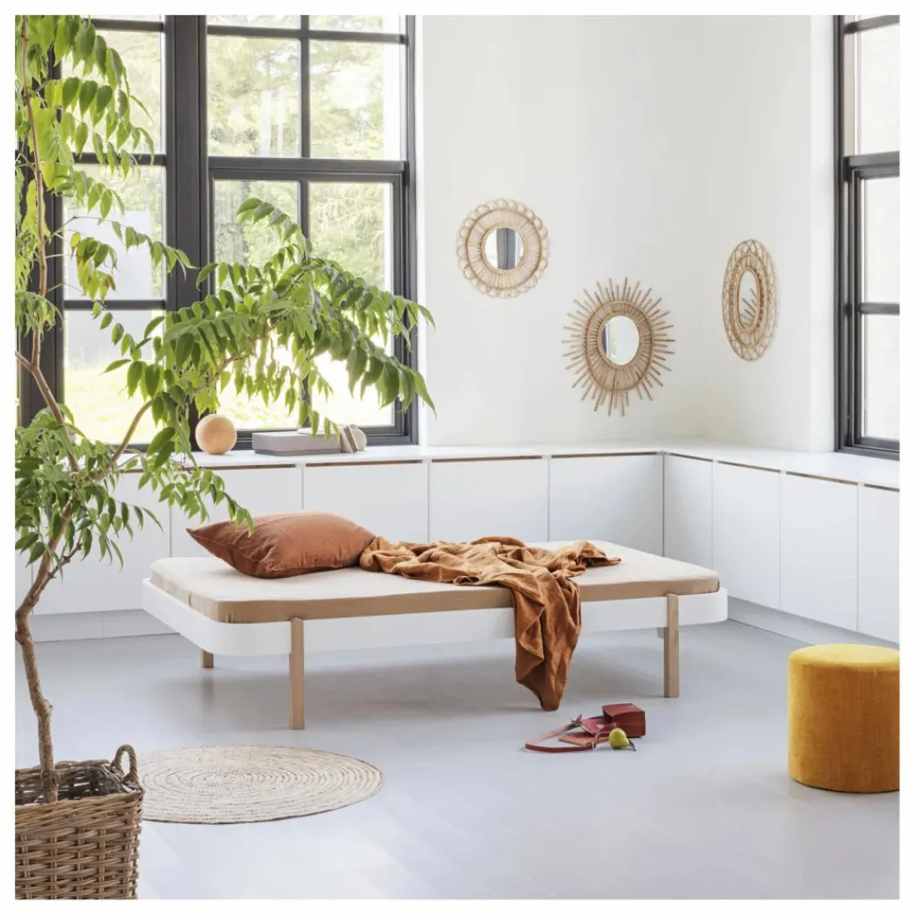 Le lit enfant Wood Lounger présente un style épuré et moderne. Agrémenté de coussins, il se transforme en jolie banquette. C’est une pièce idéale pour une maison de vacances, une chambre d’ami ou d’adolescent.