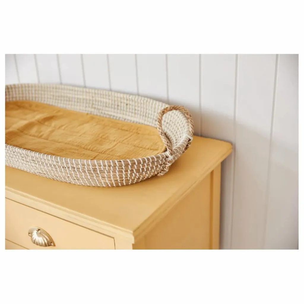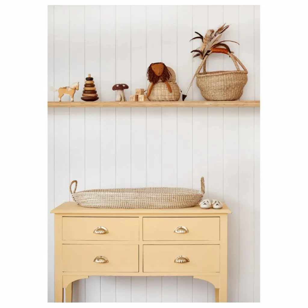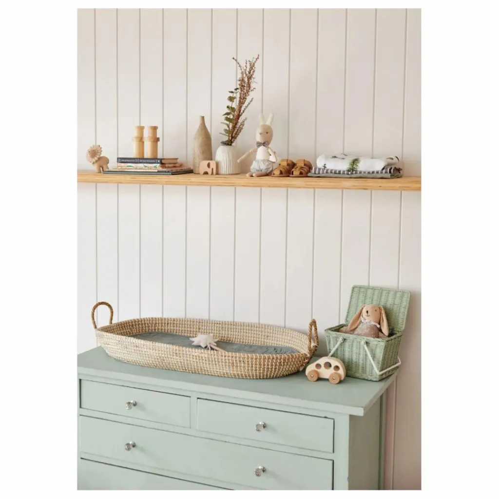 Le panier à langer Reva est un accessoire essentiel pour la chambre de bébé. Fabriqué à la main à partir d’herbes douces et de tissage de plastique recyclé, son style intemporel lui permet de se fondre dans tout type d’environnement