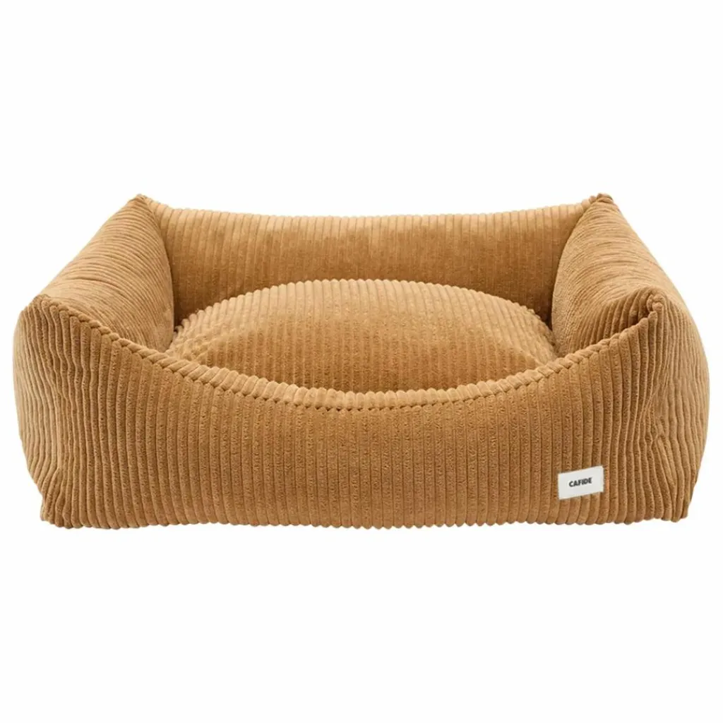 - Lit pour chien amovible et lavable, recouvert d’un tissu en velours côtelé doux et pelucheux fabriqué en Europe
