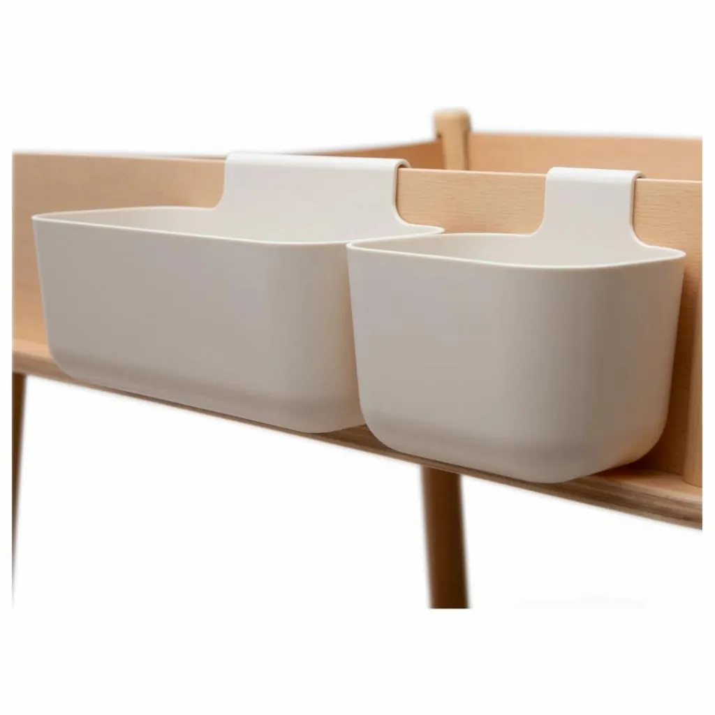 Chez Charlie Crane, tout est pensé pour vous : pour ranger vos cotons, flacons et autres accessoires essentiels, les paniers de rangement se fixent sur les côtés de la table à langer, prêts à vous simplifier la vie.