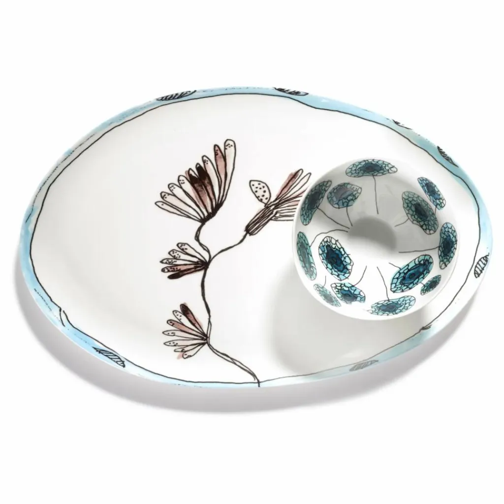 En collaboration avec Serax, la maison de mode italienne Marni a lancé un élégant service en porcelaine de 120 pièces, qui célèbre l’esprit artistique de la marque. Le motif floral inspiré de la nature est signé Francesco Rossi, le directeur artistique de Marni. Il est décalqué sur la porcelaine fine, avant d’y apposer une glaçure pour le rendre résistant à l’usure. Les formes légèrement asymétriques des assiettes, bols, tasses, plats et théières accentuent la finition manuelle et la qualité de la porcelaine.