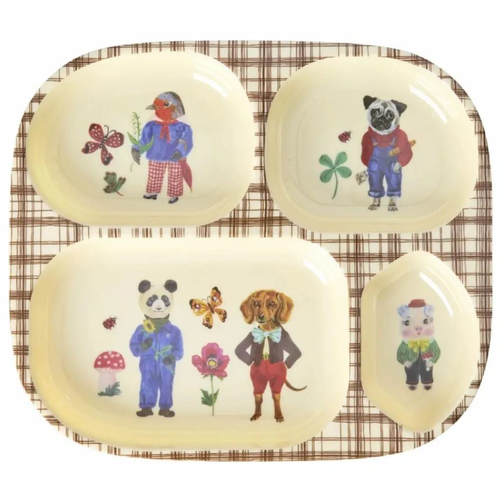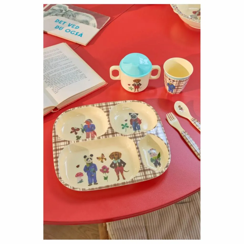 - Set bébé en mélamine pour les plus petits de la famille, présenté dans un adorable coffret cadeau. Fabriqué en mélamine, il est parfait pour un usage quotidien grâce à sa résistance et à sa surface facile à nettoyer, ce qui fait de ce set un incontournable ! Le coffret comprend une charmante assiette à 4 compartiments, un gobelet à anse et des couverts (cuillère et fourchette), le tout orné de l’imprimé animalier marron le plus doux de Nathalie Lété. Les détails ludiques et imaginatifs de Nathalie Lété transforment les moments quotidiens en moments magiques. Attention, ces produits ne conviennent pas au micro-ondes.