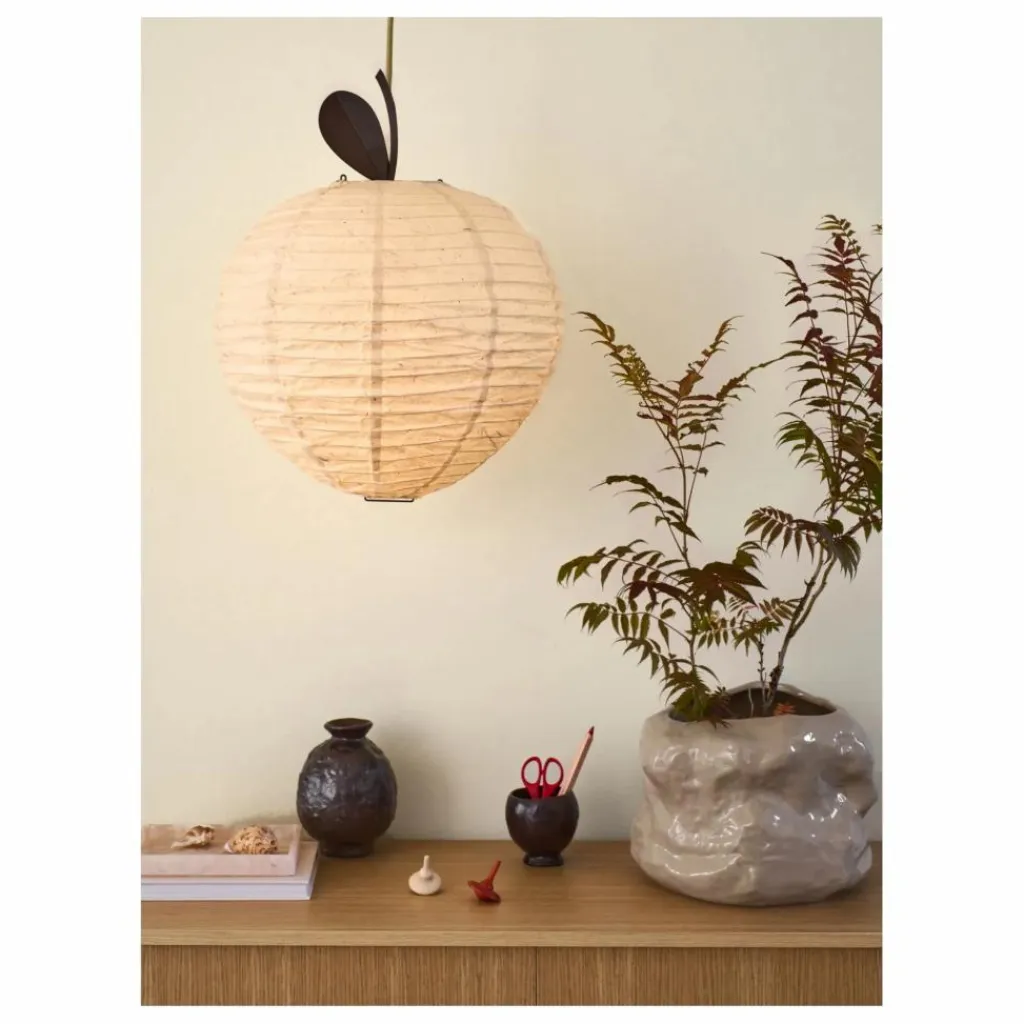 - L’abat-jour Apple est une solution d’éclairage captivante en forme de pomme. Fabriqué de manière experte à partir de papier Washi richement texturé, il émet une lumière douce et diffuse qui crée une ambiance chaleureuse et accueillante. Une feuille métallique distinctive ajoute une touche de réalisme et de charme à son design. Idéal pour lire des histoires à l’heure du coucher, pour jouer ou pour servir de veilleuse réconfortante, cet abat-jour enchanteur est un complément charmant qui plaît aussi bien aux enfants qu’aux parents.