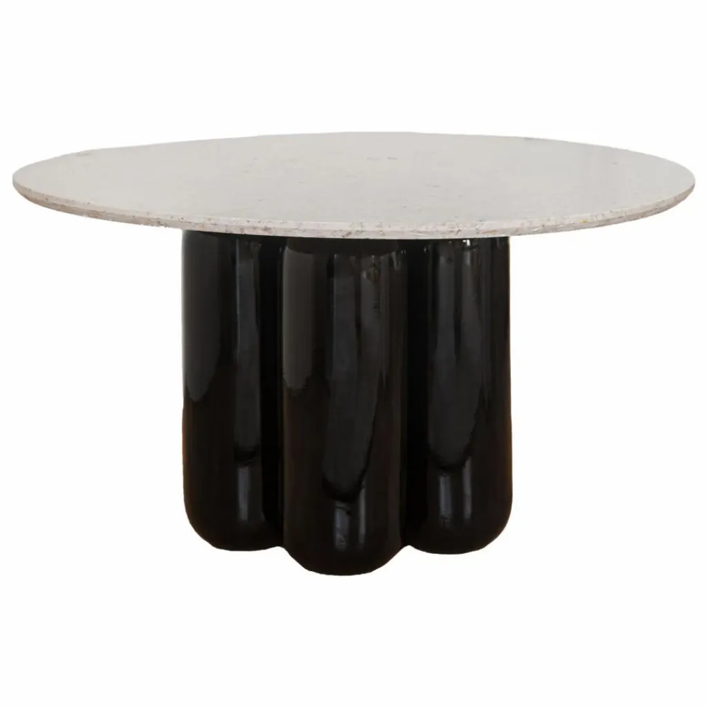 Un grand nombre de combinaisons est possible ! Chaque pied en céramique est à associer avec le plateau de votre choix ; le plateau en verre pour de la transparence et légèreté, le plateau responsable à base de volants de badminton recyclés pour de l’authenticité.