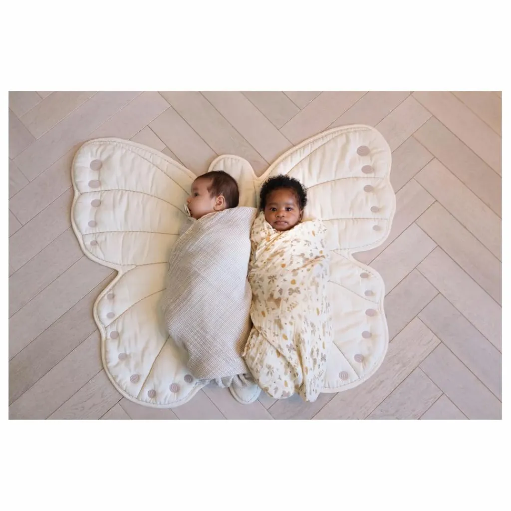 - Magnifique couverture matelassée en forme de papillon. Simple mais exquis dans son esthétique, le tapis de jeu Butterfly ajoutera une élégance intemporelle à la maison familiale. Fabriqué à partir du coton biologique le plus doux certifié GOTS, la couverture ravira les bébés et les parents. Le tapis de jeu est légèrement rembourré et convient parfaitement comme tapis de jeu sous la salle de jeux ou simplement comme un endroit confortable pour des moments douillets et contemplatifs ensemble.