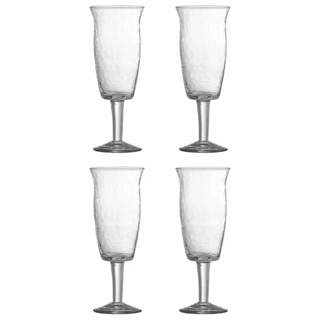 - Le Verre à vin Asha de Bloomingville est fabriqué en verre transparent avec une texture martelée subtile qui ajoute une touche organique et sophistiquée. L’ensemble se compose de quatre verres à vin uniques, idéaux pour déguster du vin avec style.