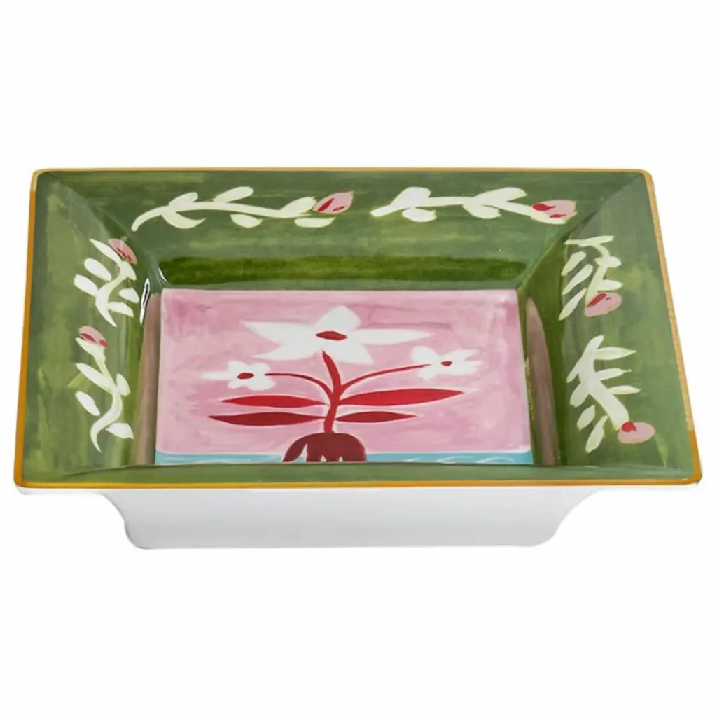 - plateau avec décalcomanie et détails dorés, décorations appliquées à la main et détails dorés