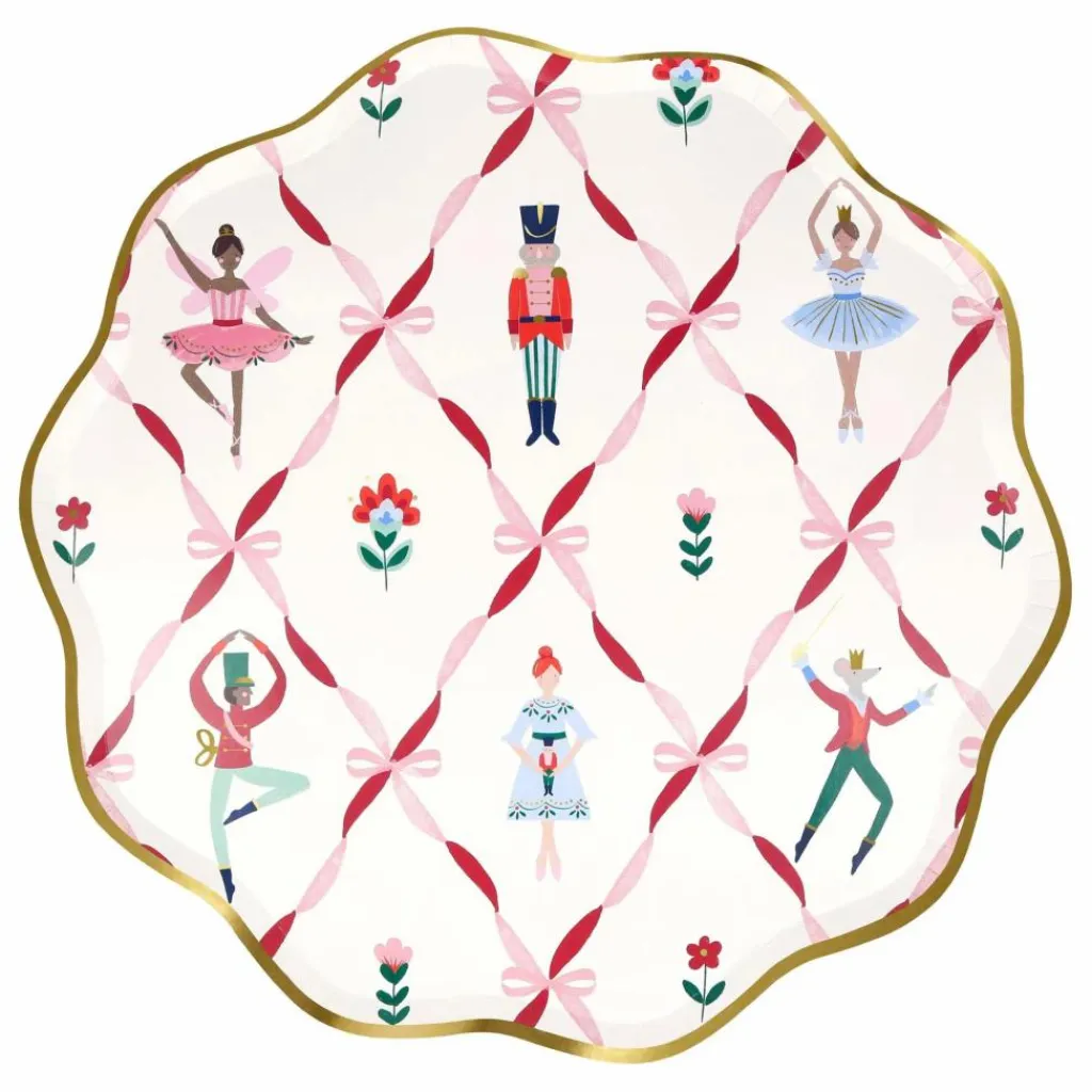 - Apportez la magie intemporelle du ballet Casse-Noisette à votre table de fête avec ces assiettes en papier haut de gamme. Illustrées de personnages emblématiques et de nœuds élégants, elles associent harmonieusement les couleurs classiques et modernes de Noël pour capturer tout le charme de ce conte féerique. Un détail chic et pratique pour insuffler une touche de tradition à vos célébrations.