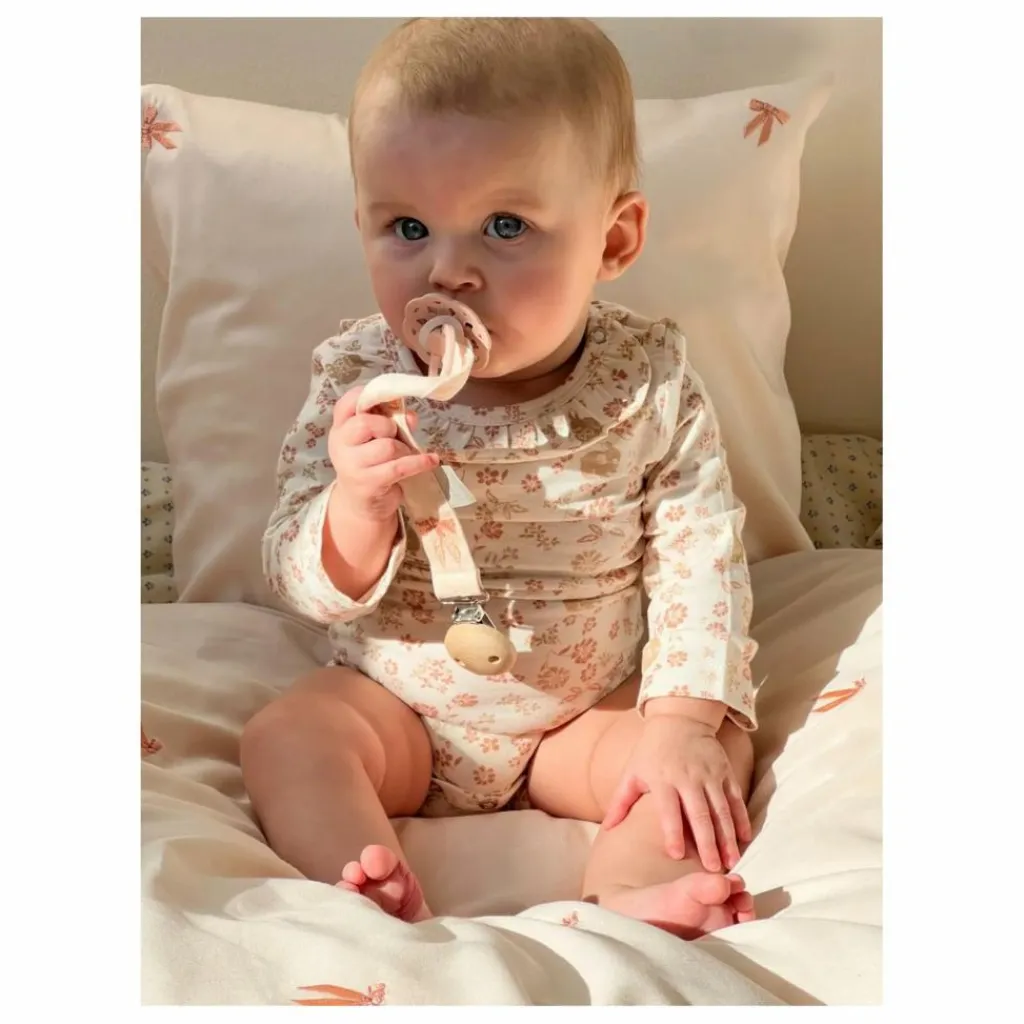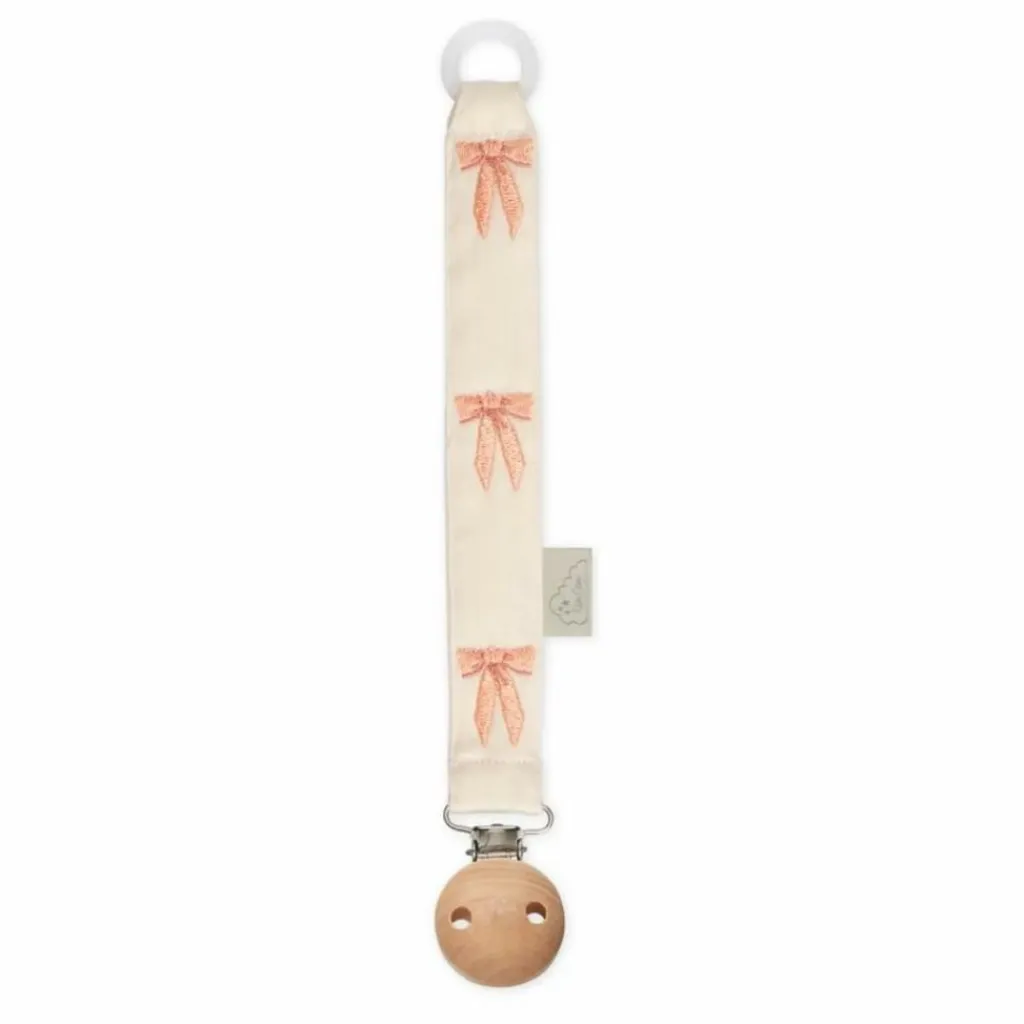 - Gardez la sucette de votre bébé à portée de main et non sur le sol grâce à notre attache-sucette brodée au motif de nœuds romantiques. Fabriqué en coton biologique certifié GOTS, ce charmant porte-sucette est orné d’une délicate broderie de nœuds roses. L’attache sécurisée se fixe facilement aux vêtements de votre bébé, garantissant que la sucette reste propre et à portée de main. Le porte-tétine Bows allie fonctionnalité et fantaisie, ce qui en fait un accessoire pratique et élégant pour votre enfant.