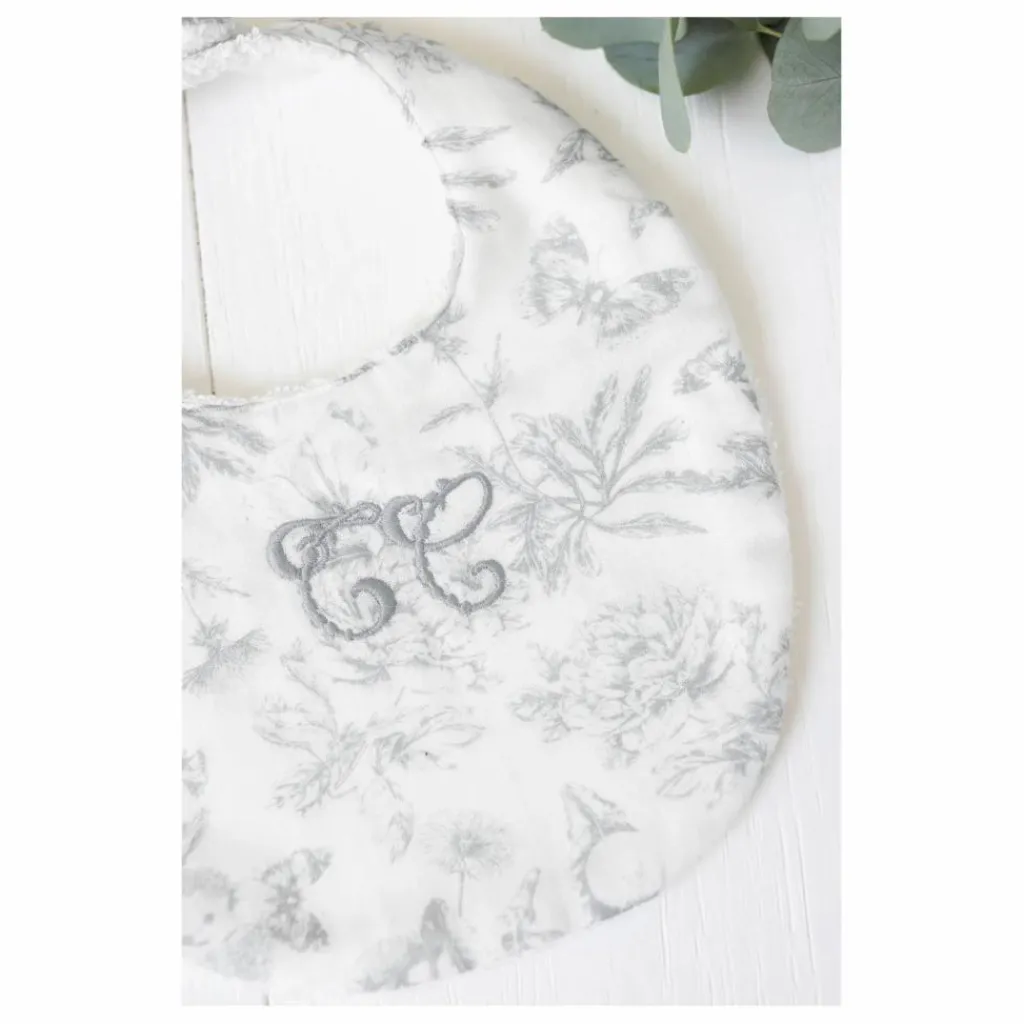 - Bavoir en imprimé inspiration Toile de Jouy dessiné par Tartine et Chocolat. Fermeture avec bouton pression.