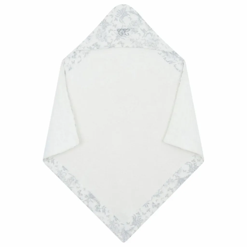 - Cape de bain blanche, bordée de l’imprimé Toile de Jouy dessiné par Tartine et Chocolat. Confectionnée en coton lange et éponge, elle allie douceur, absorption et raffinement pour les moments de tendresse après le bain.