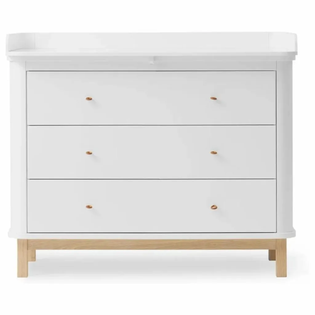 - La commode à langer 3 tiroirs Wood sont fabriquées en MDF. Les pieds et patères sont en chêne huilé blanc.