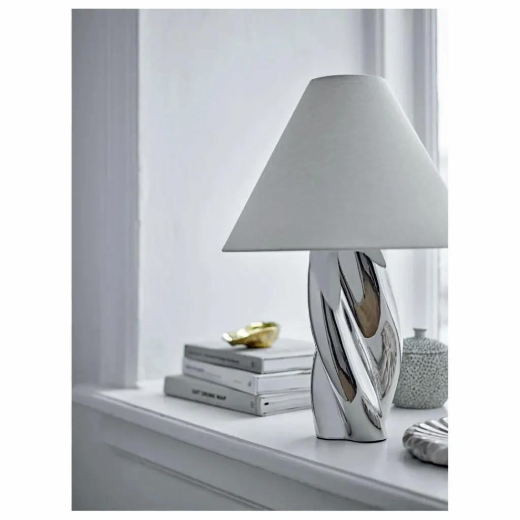 - La Lampe de table Silva de Bloomingville est dotée d’une base sculpturale en grès avec une finition brillante de couleur argentée. Elle est associée à un abat-jour classique en lin clair pour un look élégant et décoratif.