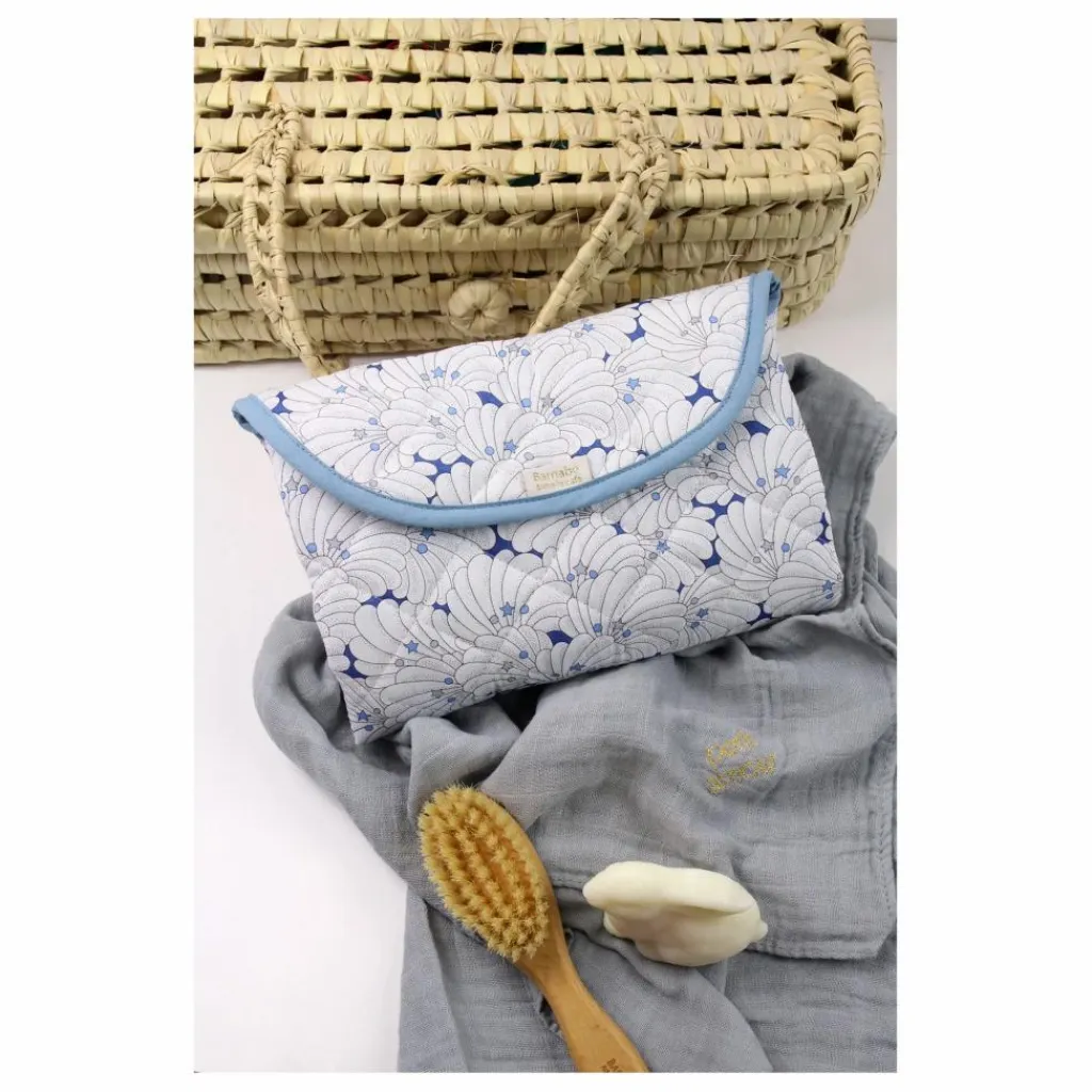 - Ce tapis de change nomade en tissu Liberty® molletonné, très pratique grâce à son intérieur plastifié.