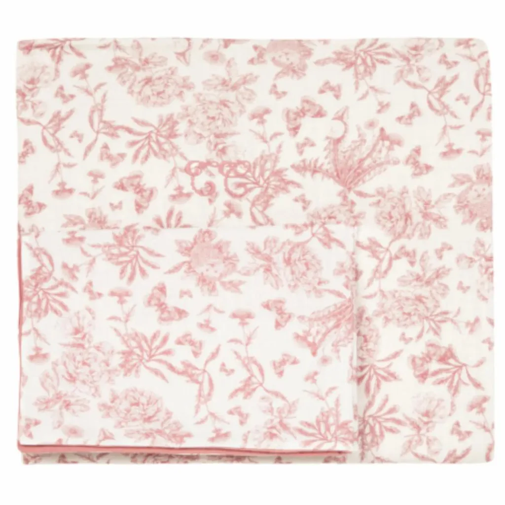 Cette jolie parure de lit en Toile de Jouy toute douce possède un joli côté rose profond et chic, et l’autre un imprimé élégant.