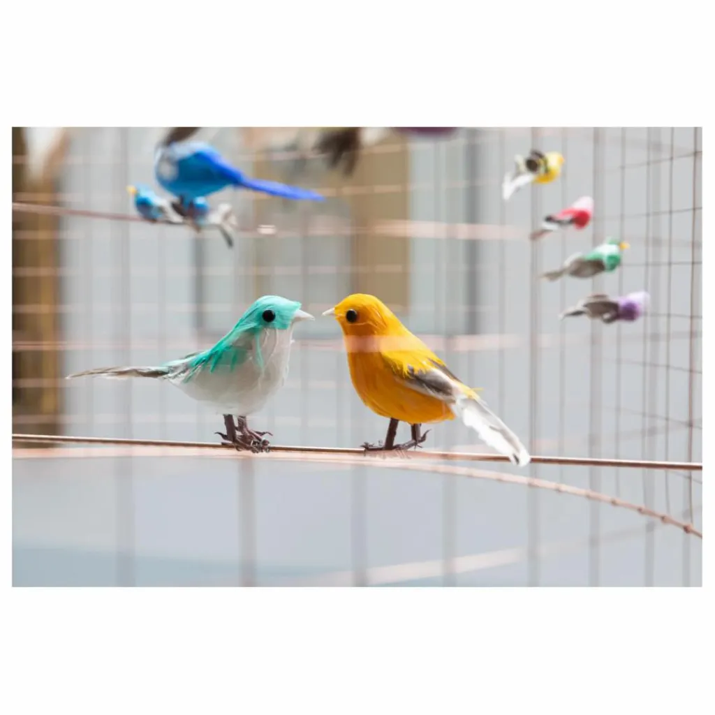 Poétique et moderne, la suspension grande volière donne vie à de faux oiseaux plus vrais que nature, dans un superbe abat-jour en grillage cuivré. À la fois aérienne, baroque et contemporaine, chaque pièce dessinée et crée par l’artiste est empreint d’une incroyable douceur et dégage une véritable élégance. Designer exigeant, Mathieu Challières imagine des luminaires joyeux et uniques en leur genre, devenus au fil du temps de véritables icônes du design. Faits-main en France, ces créations incontournables se déclinent en suspension, lampe à poser ou lampadaire.