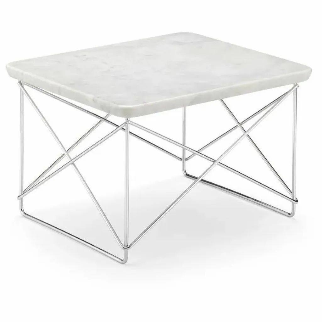 - Détails : Plateau en marbre blanc, Piétement en fil d’acier, Finition chromée