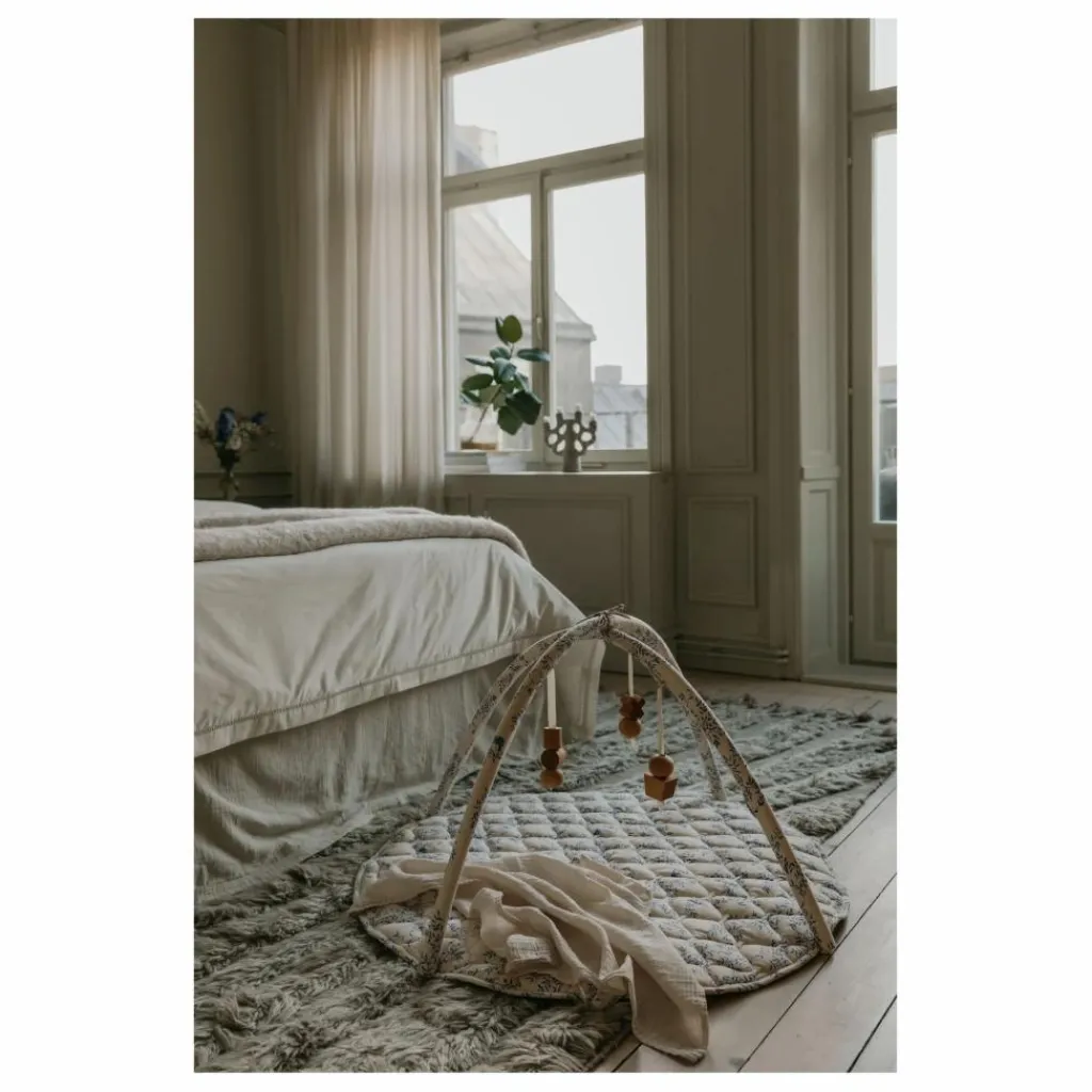 - Tapis d’activité matelassé avec arches en satin de coton biologique durable. Les arches amovibles s’attachent à la couverture avec du velcro et sont conçues avec des boucles pour suspendre des jouets d’activité conçus pour le jeu interactif. Le tapis d’éveil peut être utilisé sans les arceaux comme tapis de jeu lorsque l’enfant peut s’asseoir tout seul et que le rembourrage fournit une surface douce sur laquelle l’enfant peut jouer. Ce produit a été testé et est conforme aux normes CE/UKCA. Ne pas laver les arches – déconnecter les arches et les enlever avant de les laver. Les jouets de gymnastique pour bébé ne sont pas inclus.