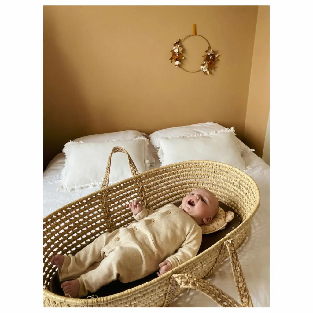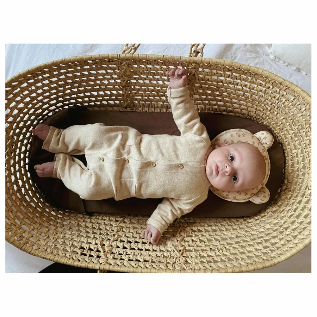 - Placez le P’tit Panda bien à plat. Couchez bébé sur le dos. Vérifiez que sa tête se trouve bien au centre du P’tit Panda.