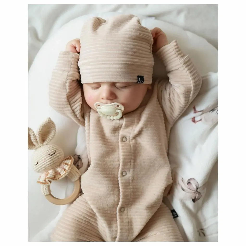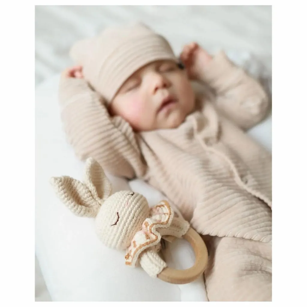 - Notre anneau de dentition Bonnie the Bunny soulagera les gencives douloureuses de votre bébé pendant la phase de dentition. Cet adorable jouet sera un compagnon idéal pour votre enfant ! Fabriqué avec soin à la main à partir de coton biologique certifié GOTS. Nos produits sont fabriqués avec amour par des artisans talentueux qui utilisent des techniques traditionnelles. Chaque pièce est vraiment unique et porte l’individualité de l’artisan qui l’a fabriquée. Tous nos jouets sont sans danger pour les peaux sensibles. Conçu en Norvège Fabriqué à la main de manière éthique en Turquie – 100% coton biologique – Hypoallergénique et naturellement antibactérien – Teintures éco-responsables et non toxiques – Rembourrage : polyester recyclé (Global Recycling Standard) Conforme aux normes CE Convient dès la naissance Instructions de nettoyage Anneau en bois d’érable naturel. Nous recommandons de le nettoyer à la main avec de l’eau savonneuse. Ne pas utiliser de nettoyants abrasifs ou d’autres techniques de nettoyage et de stérilisation. Laisser sécher à l’air libre. Conserver dans un endroit propre, à l’abri de la lumière et de l’humidité.