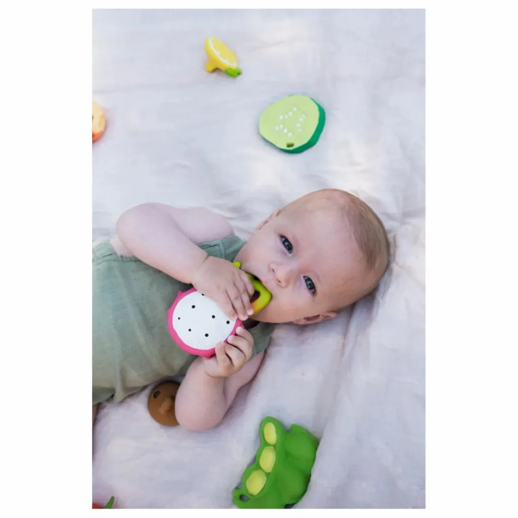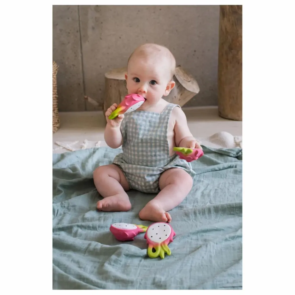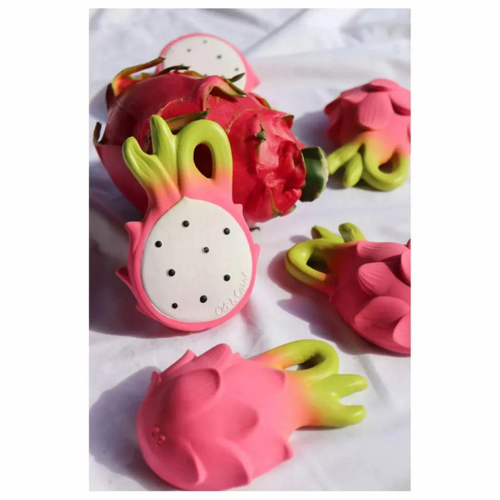 - Fuscia le fruit du dragon est un anneau de dentition parfait pour soulager les gencives douloureuses ou jouer dans le bain.