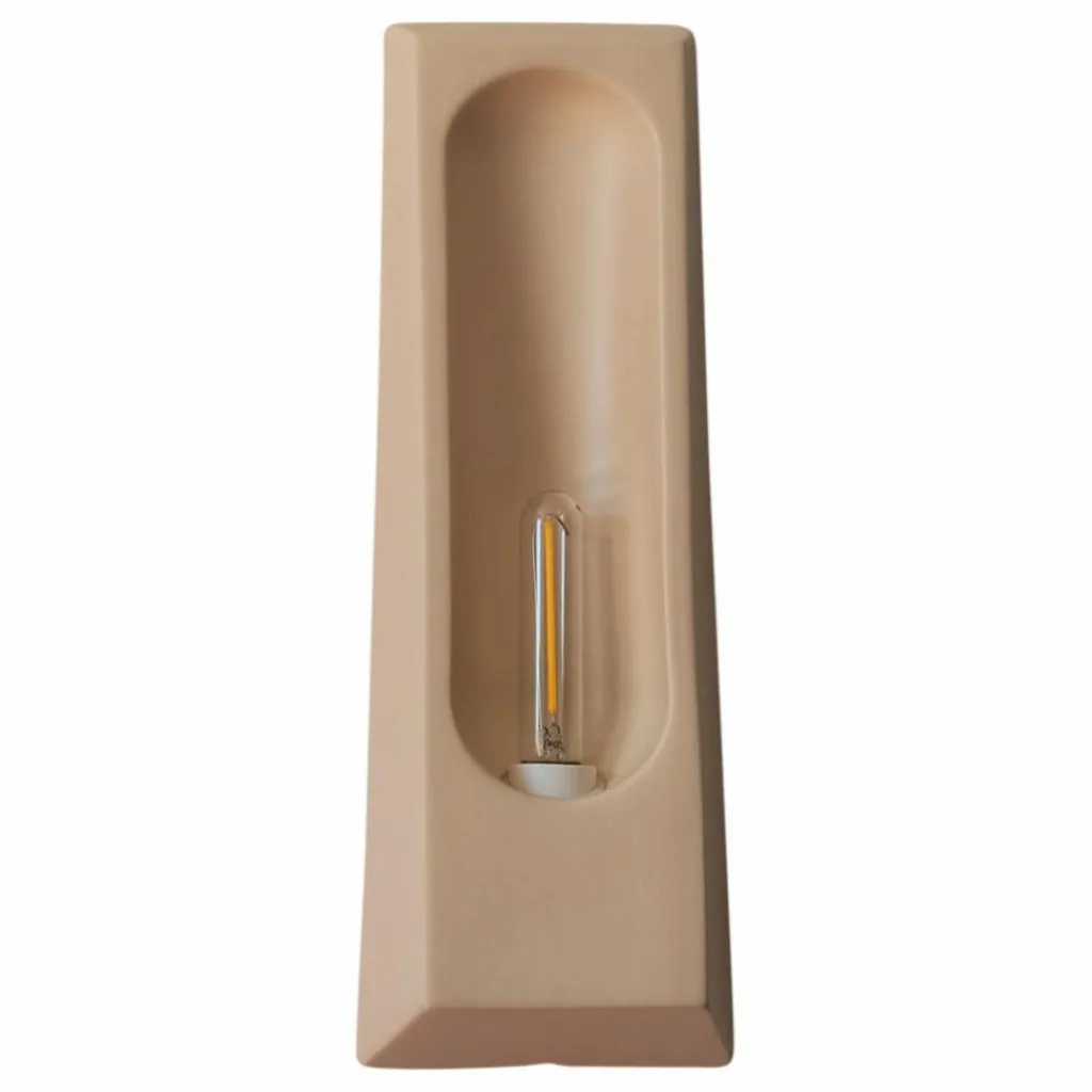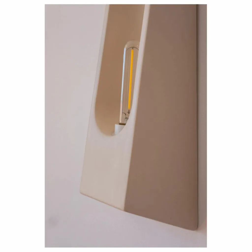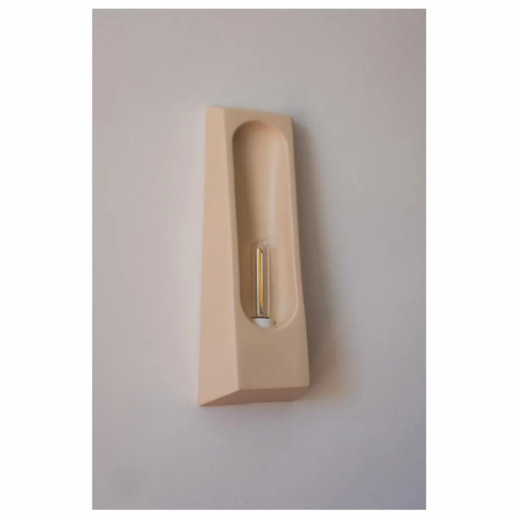 Cette applique murale est inspirée de l’alcove architecturale. Une ampoule tubulaire est mise à l’honneur dans un écrin de couleur qui sublime la lumière, rappelant l’éclairage à la bougie.