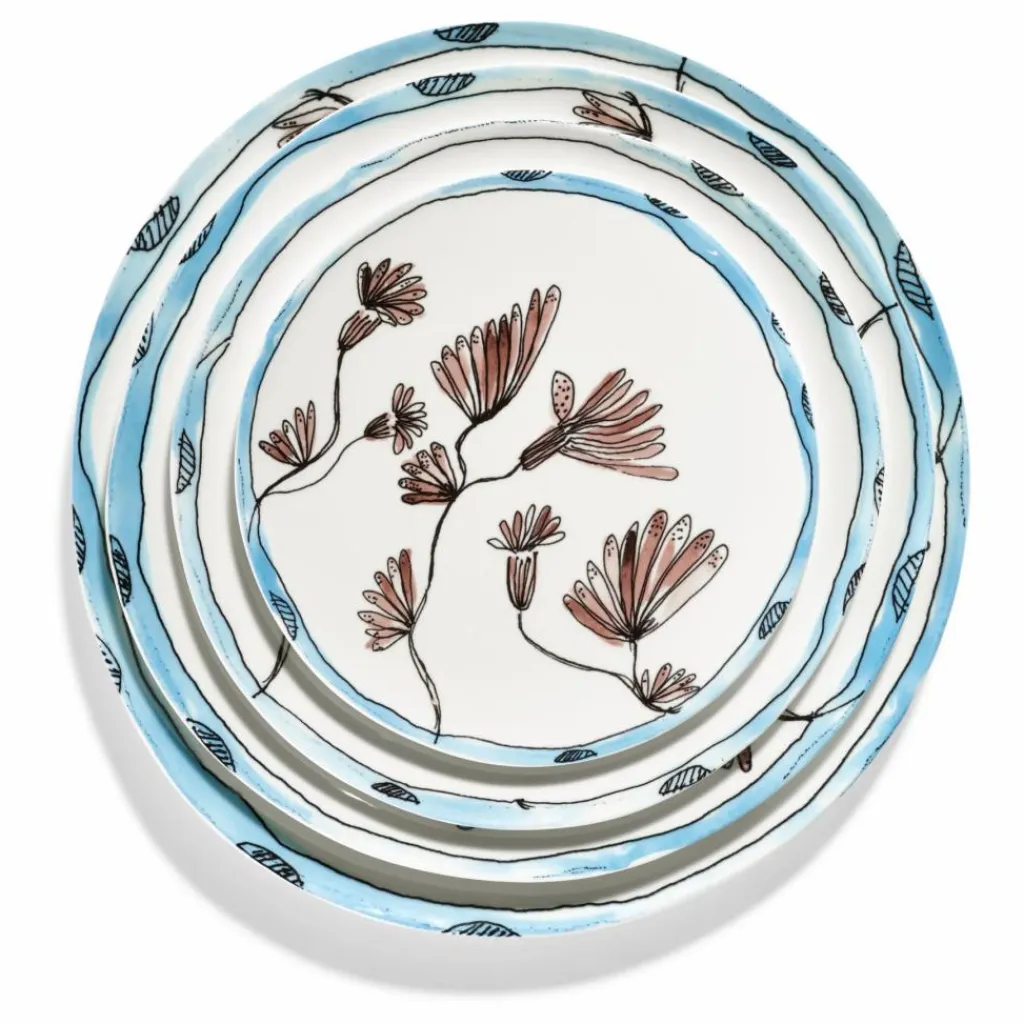 En collaboration avec Serax, la maison de mode italienne Marni a lancé un élégant service en porcelaine de 120 pièces, qui célèbre l’esprit artistique de la marque. Le motif floral inspiré de la nature est signé Francesco Rossi, le directeur artistique de Marni. Il est décalqué sur la porcelaine fine, avant d’y apposer une glaçure pour le rendre résistant à l’usure. Les formes légèrement asymétriques des assiettes, bols, tasses, plats et théières accentuent la finition manuelle et la qualité de la porcelaine.