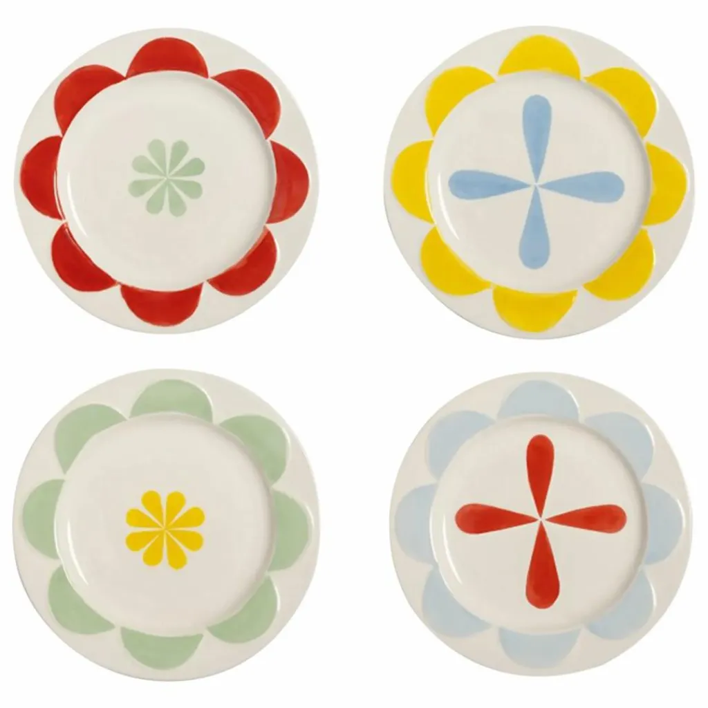 - Ce set de quatre assiettes à dessert est une addition étonnante à toute table, combinant la fonctionnalité avec une touche de design d’inspiration folklorique le long du bord. Fabriquées en porcelaine durable de haute qualité, les assiettes rayonnent à la fois d’élégance et de solidité, ce qui les rend parfaites pour un usage quotidien comme pour les occasions spéciales. Le bord peint abstrait ajoute une note de gaieté à l’ensemble, rehaussant la présentation générale. Ce qui rend ces assiettes vraiment spéciales, c’est le motif qui apparaît lorsqu’elles sont combinées avec d’autres pièces de la même collection. Chaque assiette présente un design unique qui, associé aux autres assiettes et bols, forme un motif folklorique harmonieux, créant un ensemble visuellement attrayant sur la table.