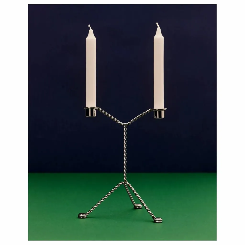 - Conçu par le designer néerlandais Chris Kabel, le bougeoir Wire Candleholder est fabriqué à partir d’un seul morceau de fil d’acier torsadé qui est plié pour former un double candélabre. Les deux bougeoirs du haut sont contrebalancés par les trois pieds angulaires, créant un design simple mais élégant qui peut être utilisé sur les rebords de fenêtre, les tables à manger ou d’autres surfaces dans la maison. Disponible en différentes couleurs.