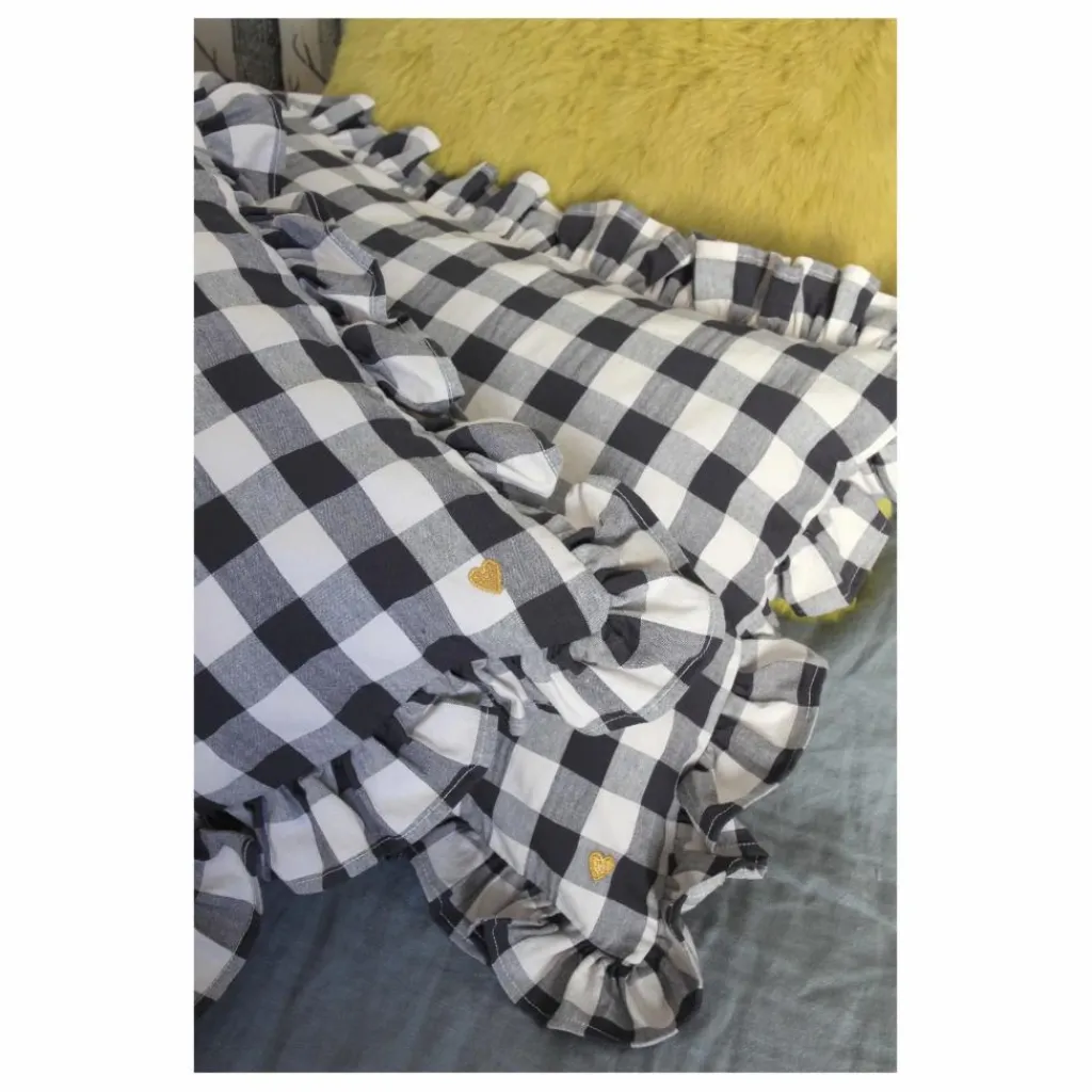 Vichy charmant, volant frou frou et broderie petit cœur. Un design exclusif signé Barnabé aime le café.