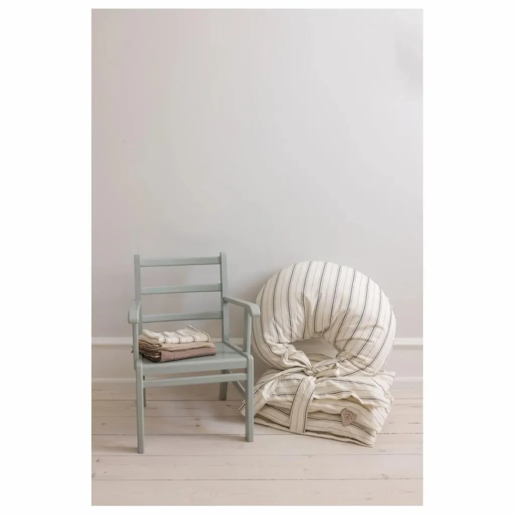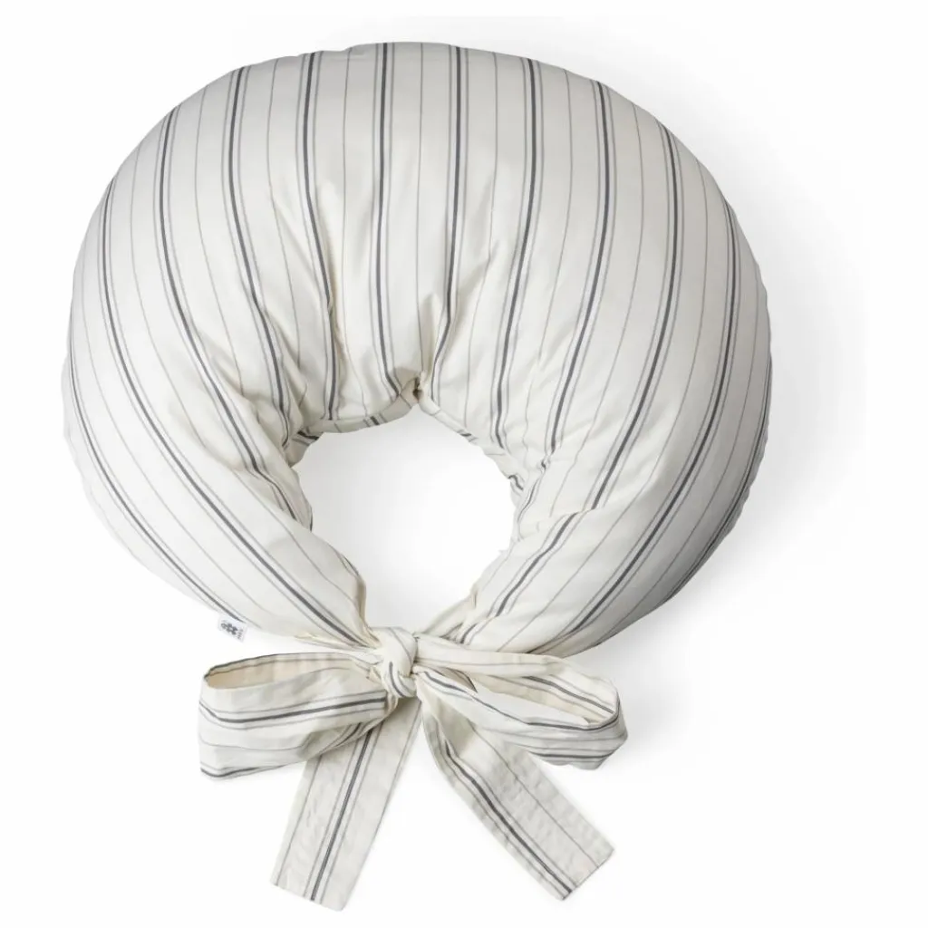 - Ce coussin d’allaitement multifonctionnel est conçu pour les femmes enceintes ou celles qui ont un nouveau-né et peut les aider à prendre le meilleur départ dans leur vie de parents. Le coussin d’allaitement peut être utilisé pendant la grossesse pour soutenir le dos lorsque vous avez besoin d’une pause. Il est également idéal pour soutenir votre ventre ou le placer entre vos genoux pour vous aider à dormir et à trouver une position de repos confortable. Lorsque votre bébé vient de naître, le coussin d’allaitement devient un soutien essentiel pendant l’allaitement au sein ou au biberon. Il aide à prévenir les tensions au niveau du cou et des épaules en vous permettant d’ajuster le coussin en fonction de vos besoins. Les sangles d’attache pratiques garantissent que le coussin reste bien en place autour de votre taille, ce qui vous donne un sentiment de sécurité et de contrôle. Cela est particulièrement utile lorsque vous déplacez votre bébé, par exemple, du berceau à la tétée. Les sangles sont également pratiques lorsque vous êtes en déplacement. Faites-en un nœud et portez le coussin en bandoulière ou accrochez-le à la poignée du landau. La taille et la forme du coussin d’allaitement vous permettent de ne pas avoir à le déplacer lorsque vous changez de côté, et si vous avez la chance d’avoir des jumeaux, il y a de la place pour les deux en même temps. Le coussin d’allaitement n’est pas seulement destiné à l’allaitement. Il peut également servir de siège pour bébé au cours des premiers mois, pour la musculation du dos et de la nuque, ou même de coussin décoratif sur le canapé. Le rembourrage du coussin d’allaitement est en kapok, une fibre naturelle douce et soyeuse qui contient un composé amer antibactérien naturel, rendant impossible la prolifération des acariens. Le kapok est donc un matériau idéal pour les personnes souffrant d’allergies. Le kapok est également respirant et régulateur de température. Lorsque vous lavez un produit en kapok, il change toujours un peu. C’est pourquoi nous vous conseillons de le suspendre à l’air libre si vous souhaitez le rafraîchir un peu. S’il y a une tache sur le produit, vous pouvez la nettoyer délicatement pour éviter de mouiller tout le produit. Si le lavage de votre produit kapok est inévitable, il est essentiel de suivre les instructions de lavage et de séchage. Le coussin d’allaitement est conçu au Danemark et sa housse est fabriquée en coton biologique lavable à 60 °C. Le tissu de haute qualité est suffisamment résistant pour résister à la chaleur et à l’humidité. Son tissu de haute qualité est suffisamment durable pour résister à de nombreux lavages et être transmis aux futurs frères et sœurs.