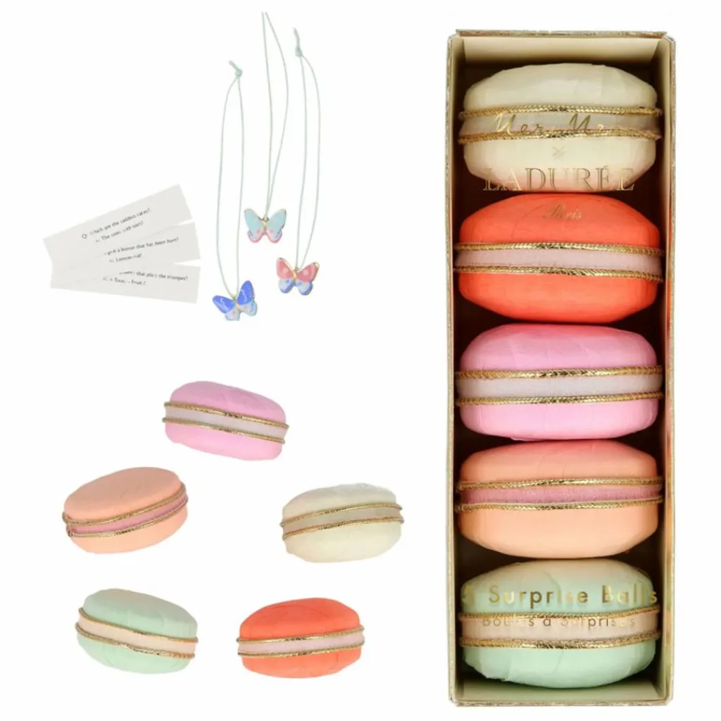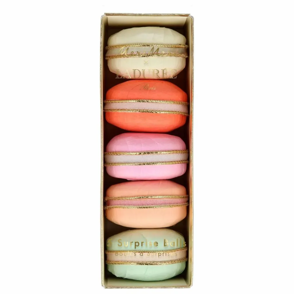 - Nous sommes ravis de collaborer avec Ladurée, le spécialiste du restaurant, salon de thé et macaron, pour créer ces merveilleuses boules surprises. Ils sont magnifiquement conçus pour ressembler à des macarons colorés et, une fois ouverts, révèlent une multitude de délicieux cadeaux.