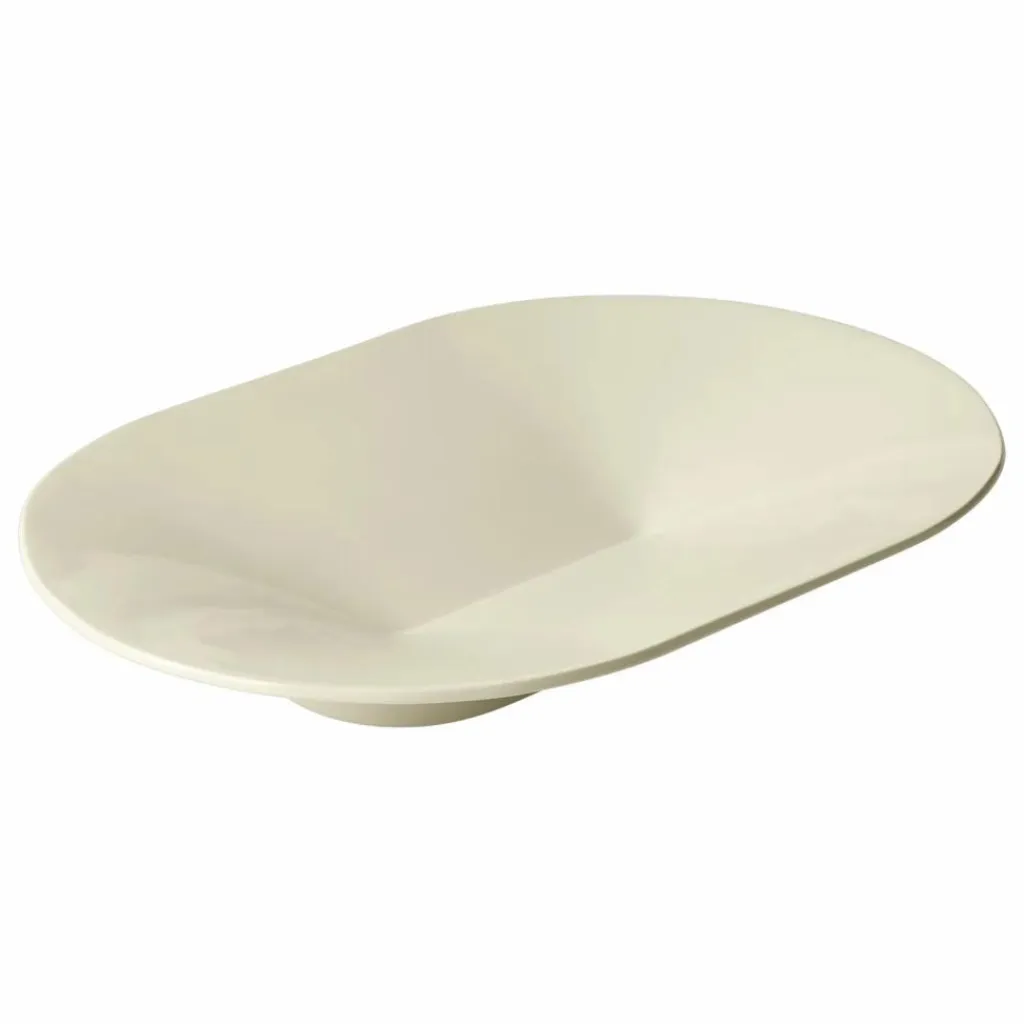 Le plat Mere est une pièce maîtresse sculpturale qui s’intègre parfaitement dans un décor de table ou un espace, qu’il soit utilisé ou non. Sa forme caractéristique est à la fois simple et ingénieuse, puisqu’une ligne au milieu se replie sur les côtés pour former un bol. Surélevé par un pied discret, il semble flotter.