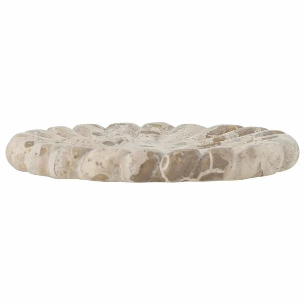 - Le Plateau Marlie de Bloomingville est fabriqué en marbre et présente une forme douce et ronde avec des détails sculptés. La variation naturelle de la couleur et de la texture de la pierre rend chaque plateau unique et lui confère un aspect organique.