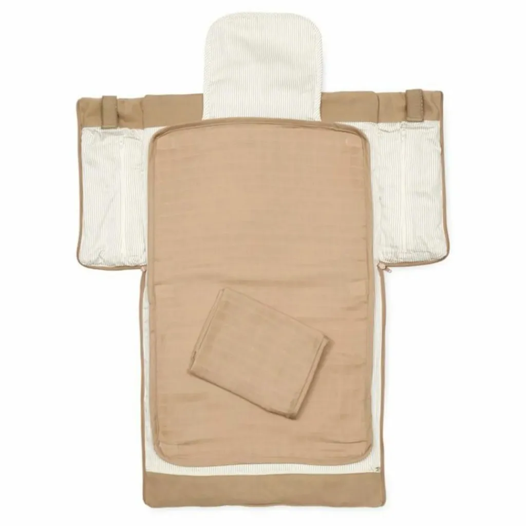 - Découvrez le summum de la commodité avec notre sac à langer pliable en toile biologique. Ce sac élégant et polyvalent se plie pour former un matelas à langer sur toute la longueur, qui peut également être utilisé comme un petit tapis de jeu pour une utilisation pratique en déplacement. Le sac à langer est doté de sangles d’épaule pour un transport facile et de sangles de poussette pour l’attacher à la poignée de la poussette. À l’intérieur, vous trouverez de nombreuses poches pour ranger tous les articles essentiels au change et de petites poches extérieures zippées pour un accès rapide. La mousseline amovible à l’intérieur garantit une hygiène et une douceur accrues lorsque vous changez votre bébé, et elle est facile à retirer et à laver après utilisation. Parfait pour les parents qui apprécient à la fois la fonctionnalité et le style.