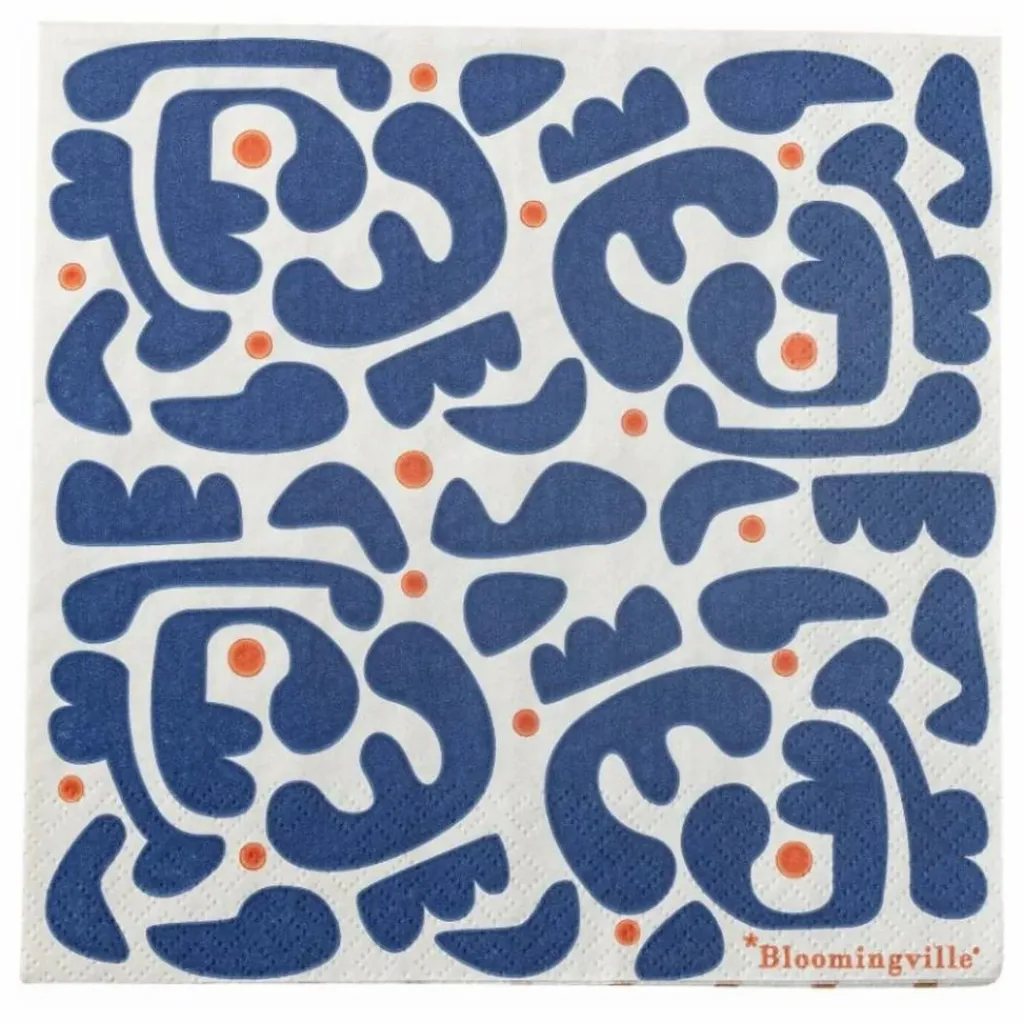 - La Serviette Eviaya de Bloomingville est un lot de 20 serviettes en mélange certifié FSC. Les serviettes présentent un motif décoratif bleu avec des points dans des tons rougeâtres, apportant une touche d’élégance à toute table. Parfaites pour les repas quotidiens et les occasions festives.
