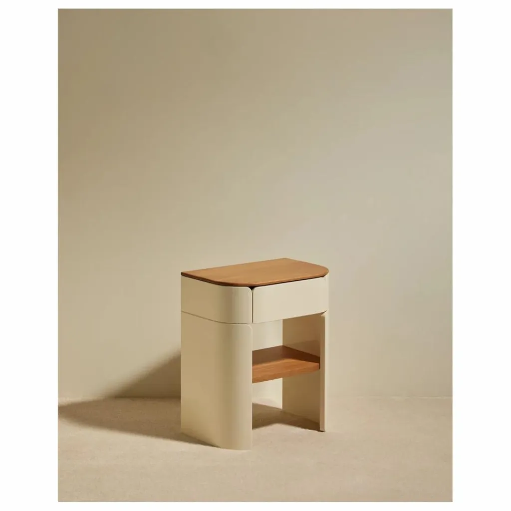 - Écrin secret. Nouvelle signature de la Maison, la collection Équilibre joue sur les accords parfaits entre chêne brut et laque haute brillance. La table de chevet éponyme affiche des courbes éclatantes – un fini laqué teinte écru – réchauffées par une base en chêne massif.