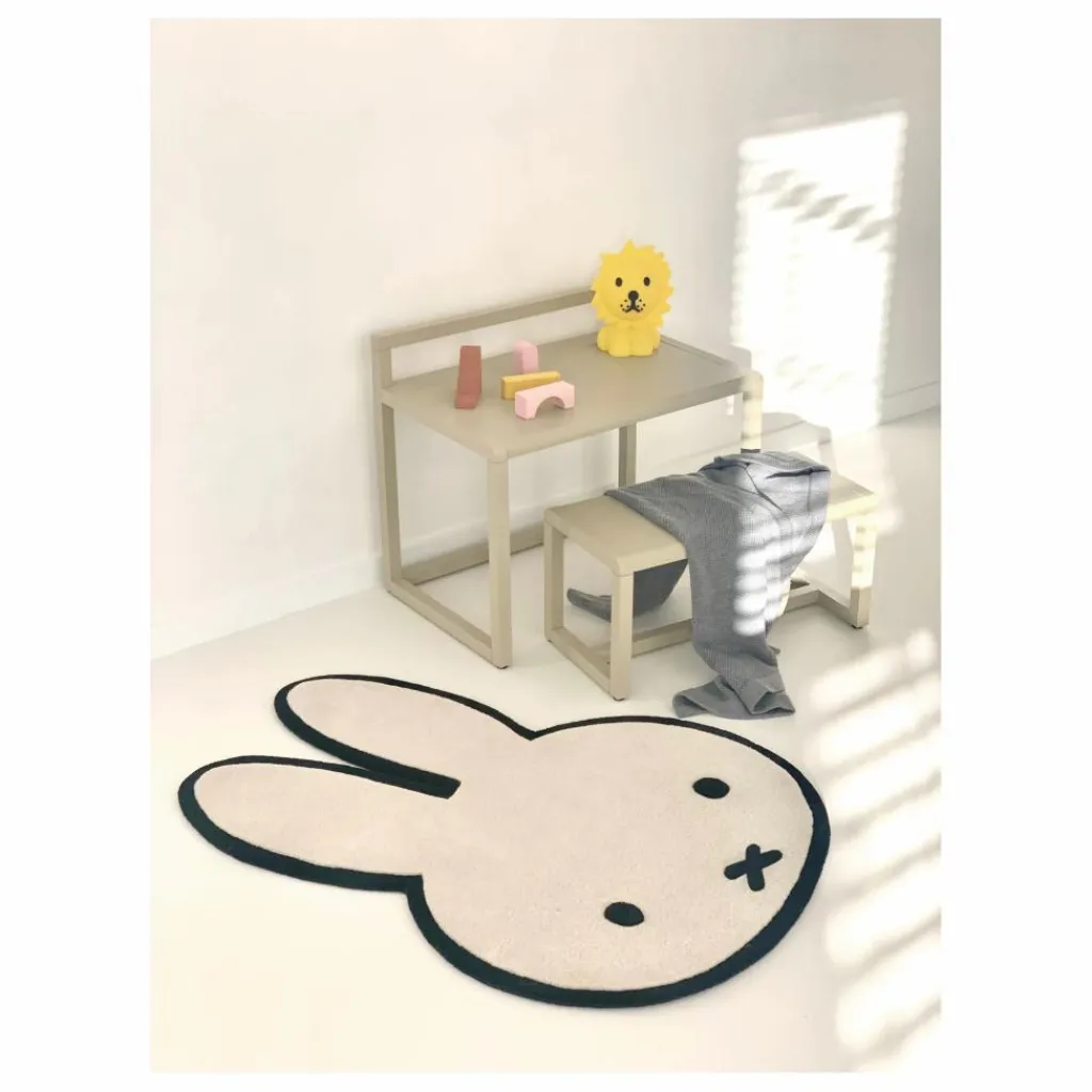 Décorez la chambre de votre enfant avec miffy, le lapin le plus célèbre du monde. Le tapis miffy est tufté à la main à partir de laine 100% néo-zélandaise. Un tapis super doux qui conviendra à toutes les chambres d’enfants. Le visage mignon et emblématique du lapin est fait dans un poil plus haut afin qu’il repose sur le tapis. Un détail subtil qui encourage le jeu des plus petits.