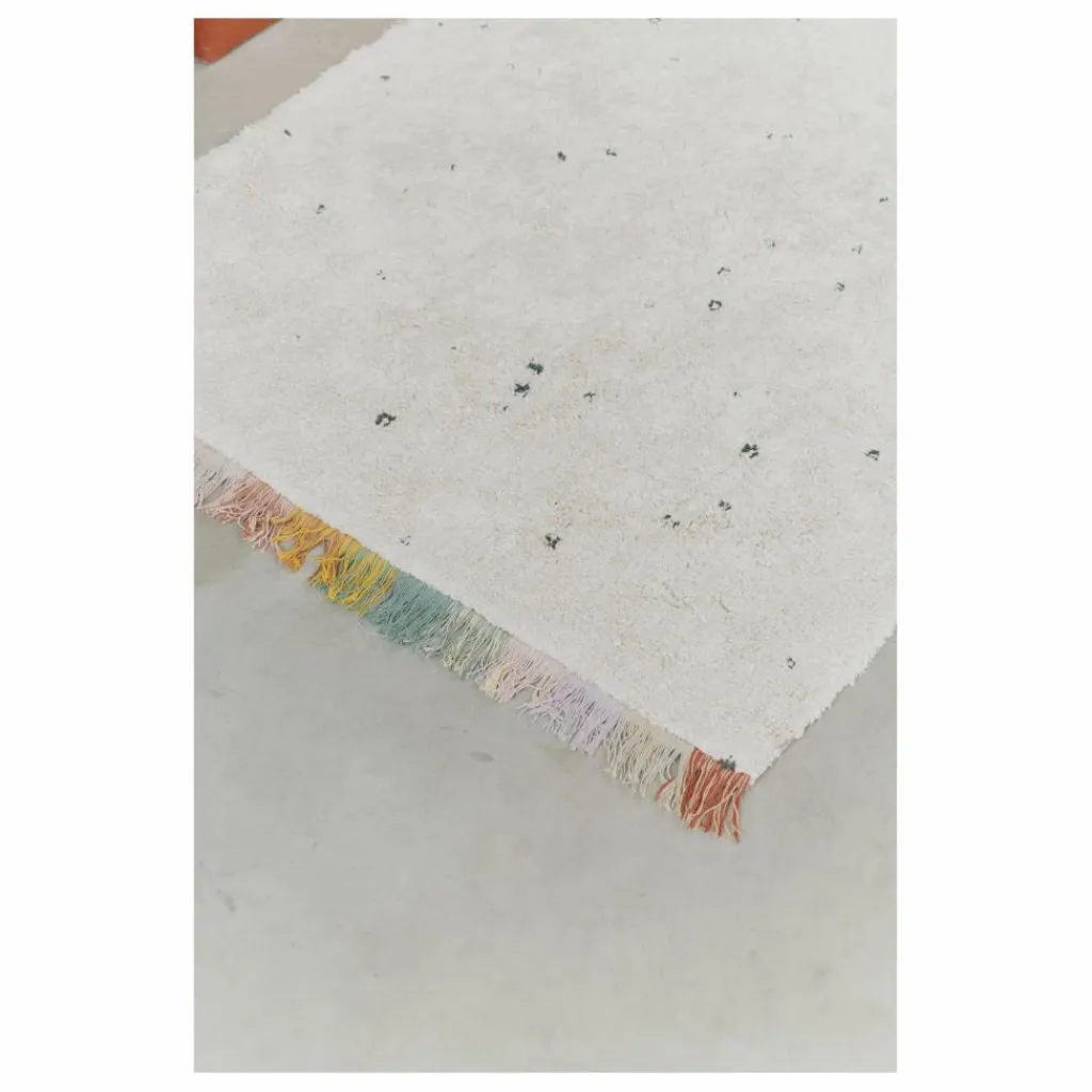 - Balancez-vous parmi les étoiles avec le tapis lavable Stardust. Un tapis rectangulaire en coton fait main de couleur naturelle avec de petits points sombres simulant la poussière d’étoiles dans le vaste espace.